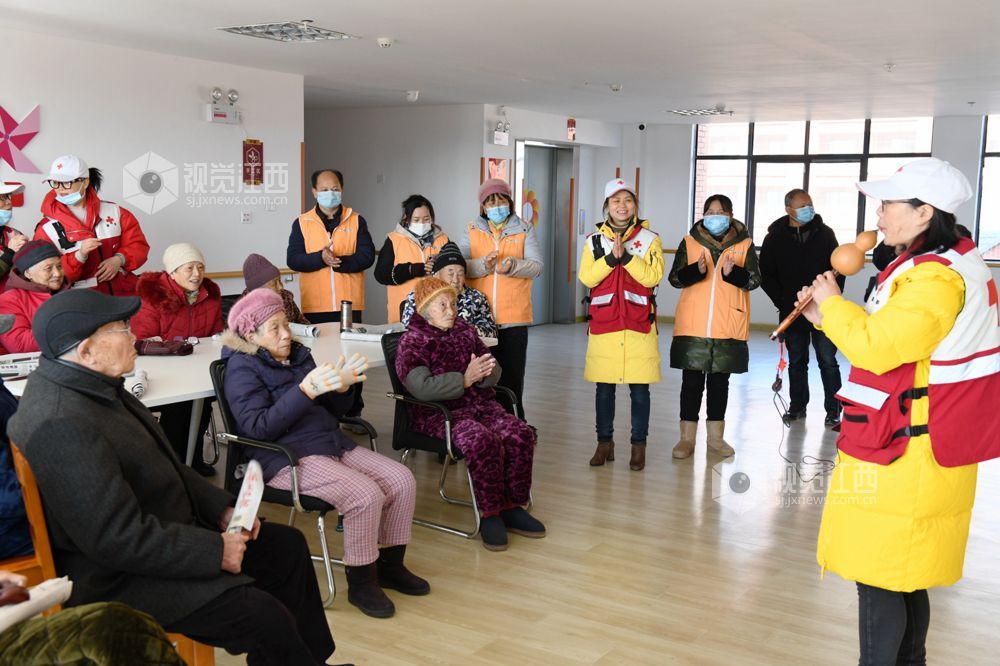 2021年1月8日,南丰县红十字会老年介护志愿者服务队的志愿者走进该县养老服务中心开展情暖寒冬敬老活动。