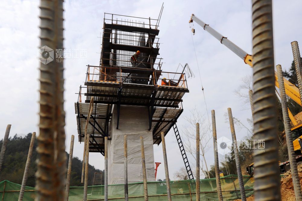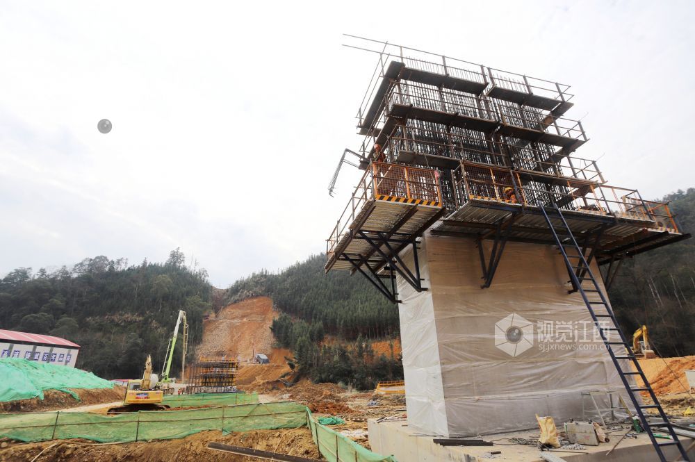 1月11日,江西省吉安市安福县宜遂高速公路彭坊二桥在抓紧施工中。该宜遂高速公路联通沪昆、泉南、莆炎三条高速,建设里程约194.5公里,概算投资约280.8亿元,建设总工期为36个月。该条高速的建设对服务于原中央苏区提速振兴,巩固罗霄山脉片区贫困乡村脱贫攻坚成果具有重要意义。2020年6月30日该项目正式开工以来,各标段工程建设正有序推进。