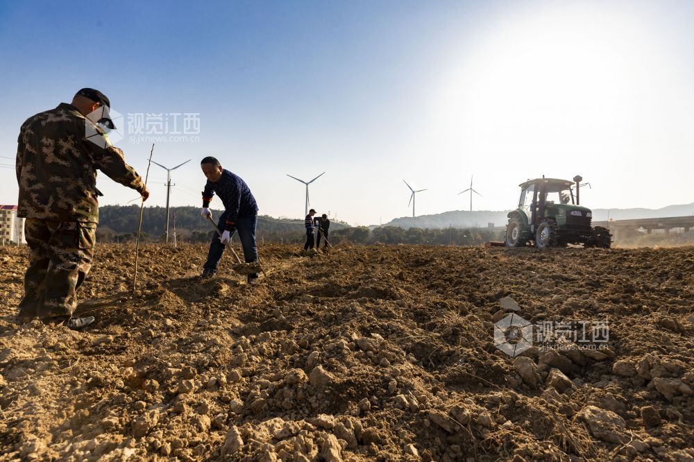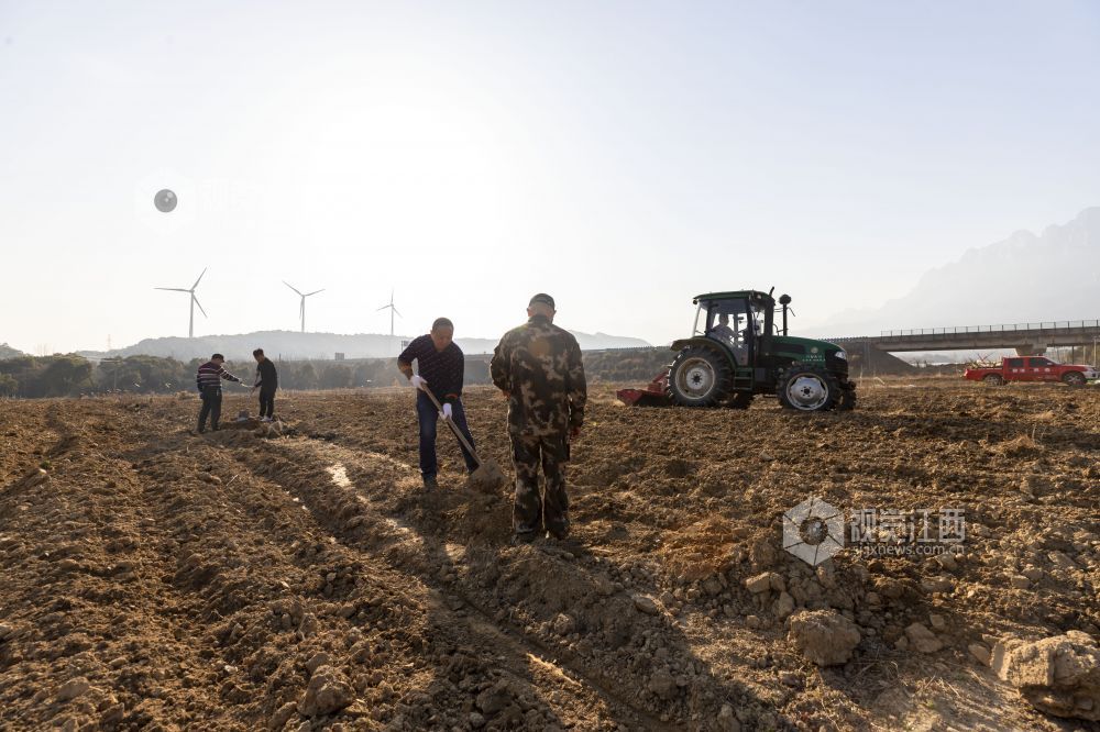 2021年1月13日,江西庐山市庐山综合垦殖场,工人们正抢抓晴好天气,种植碧根果,营造经济林。 近年来,庐山市坚持生态惠民、生态利民、生态为民,围绕产业结构调整,着力加快特色林业产业基地建设,引进优良品种进行繁育推广,努力将生态优势转化为发展优势。