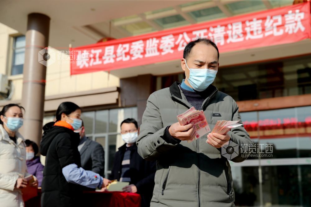 2021年1月18日,江西省吉安市峡江县纪委监委举行违纪款清退大会,将近期查处追缴的违纪款退还给群众。本次清退的3.989万元违纪款主要关联疫情期间违规收取的水费及租金等,共涉及1家企业和24家个体工商户。