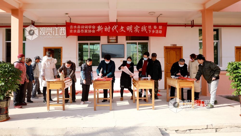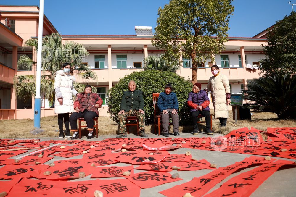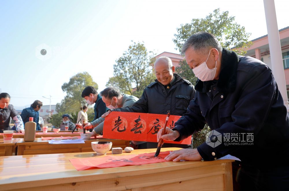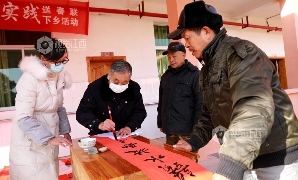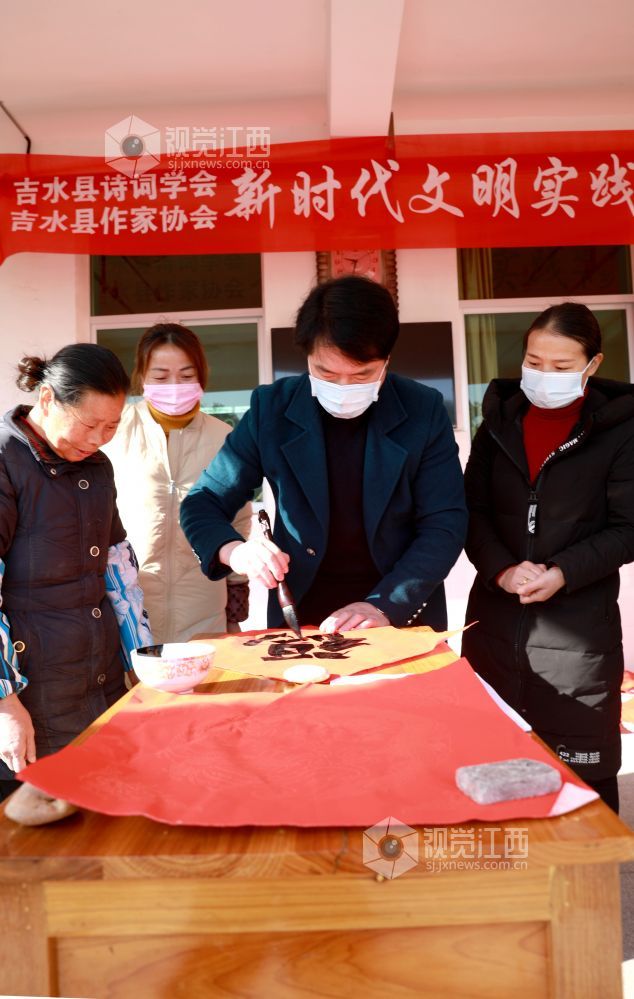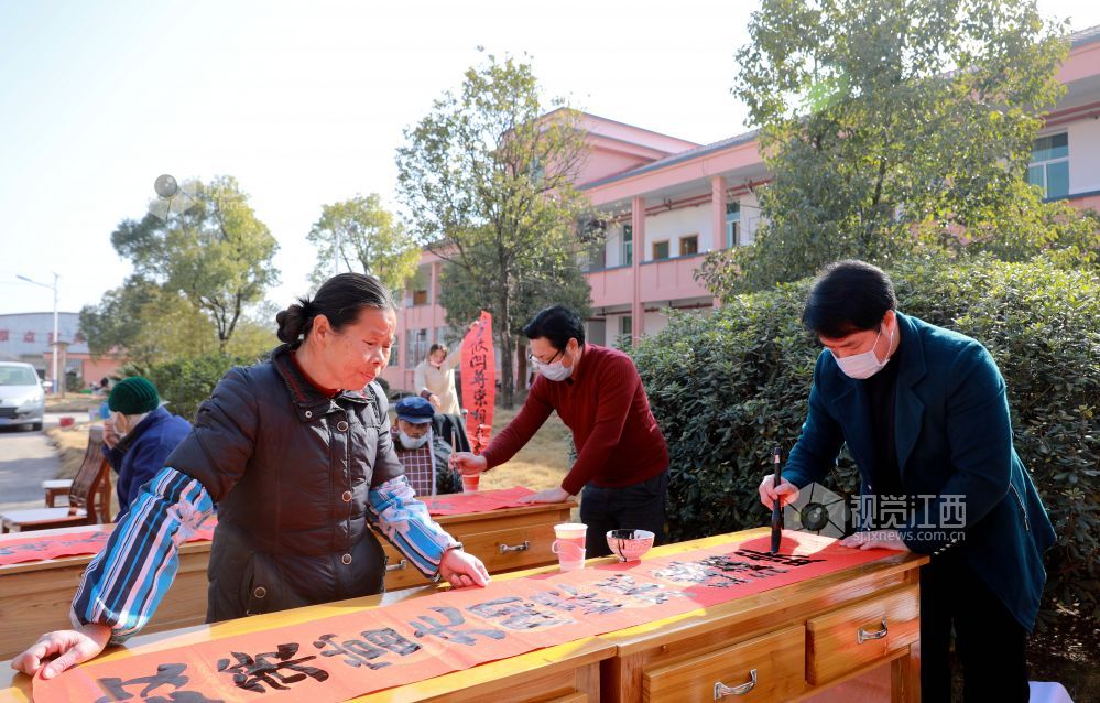 2021年1月18日,江西省吉水县文峰镇敬老院,吉水县文联组织该县作家协会、诗词学会志愿者开展新时代文明实践送春联进敬老院活动,志愿者为老人们写春联、贴对联,为老人们送来新春祝福。