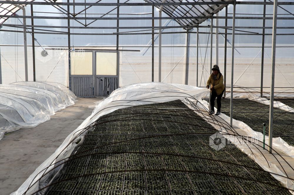2021年1月19日,在江西省峡江县金江乡庙下村育苗工厂,村民在给秧苗覆膜。寒冬时节,江西省峡江县气象局联合农业部门组织技术人员深入田间地头,指导并帮助广大农户做好冬季农作物防寒保暖各项措施,确保农业生产安全有序。
