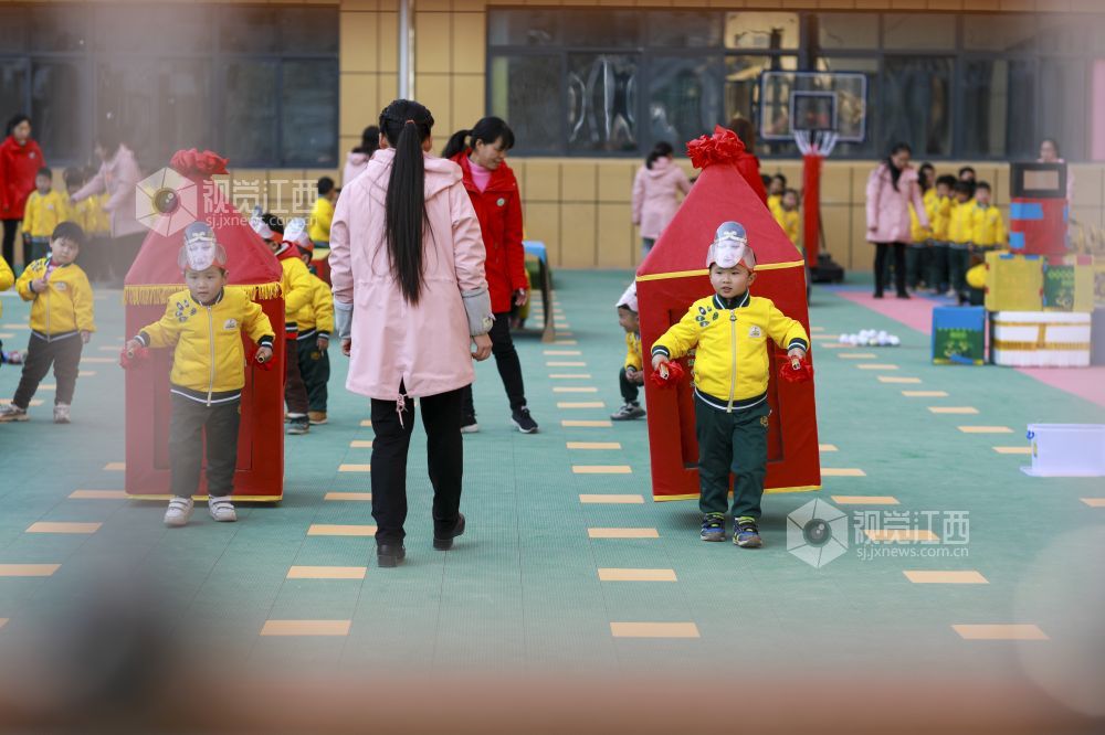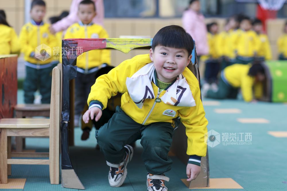 2021年1月20日,江西省吉安市吉水县城南幼儿园是一所新建幼儿园,该园老师因地制宜,就地取材,利用废纸皮、纸箱等材料制作简单、安全的体育器材,开展抬花轿、森林探险记、好玩的圈圈、机灵鼠小弟等激发幼儿智力开发、协调身体发育的游戏,在强健幼儿体魄、丰富幼儿户外生活的同时增强孩子们的环保意识,乐享快乐童年。