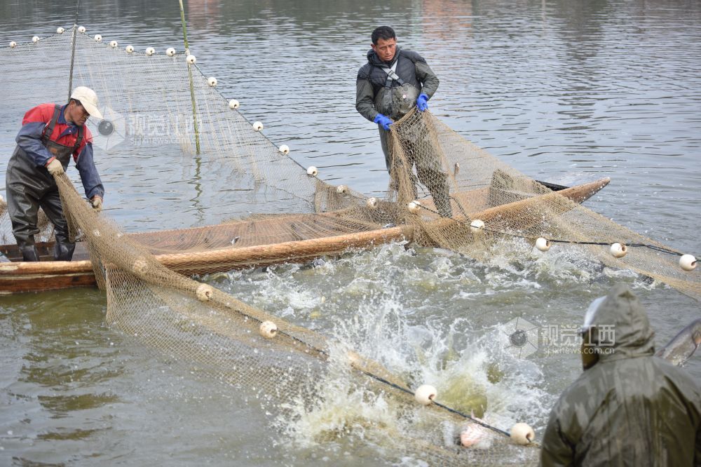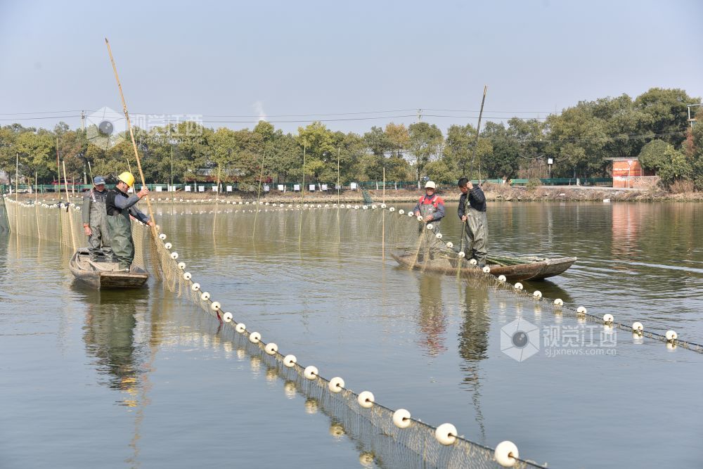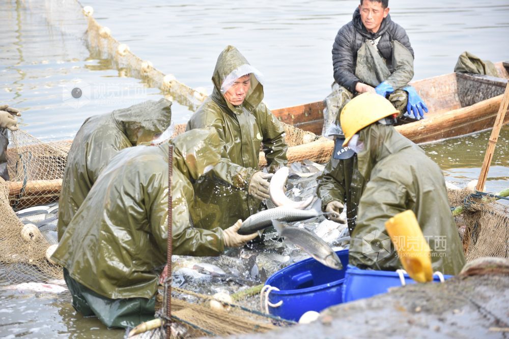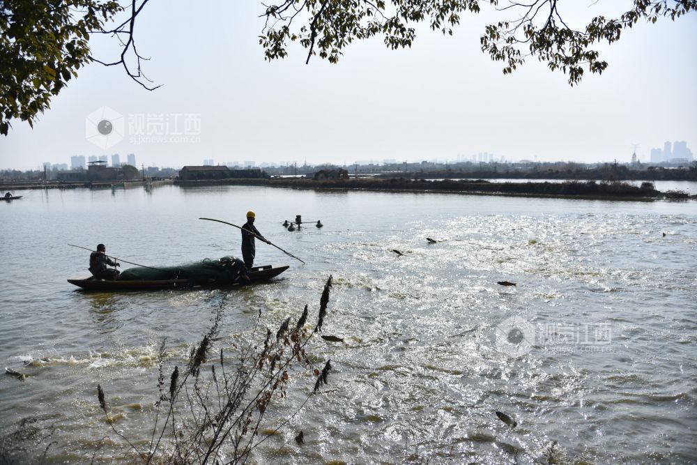 1月21日一大早,南昌市东湖区扬子洲镇滕洲村村民陶振华就带着七八位村民,忙着下网、赶鱼、收网、抓鱼、称重、装车,一条条肥硕的大鱼在围捕收拢的渔网里翻腾跳跃,呈现出一幅鱼跃人欢的生动图画。