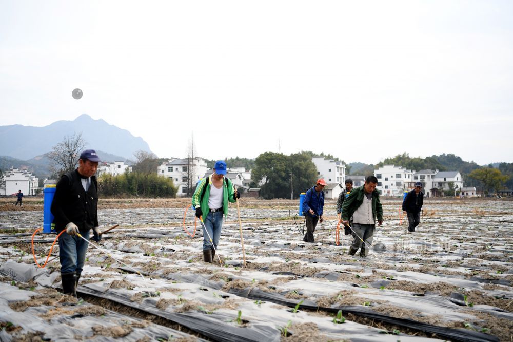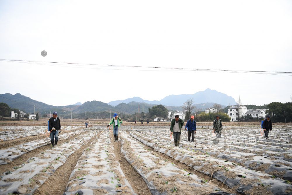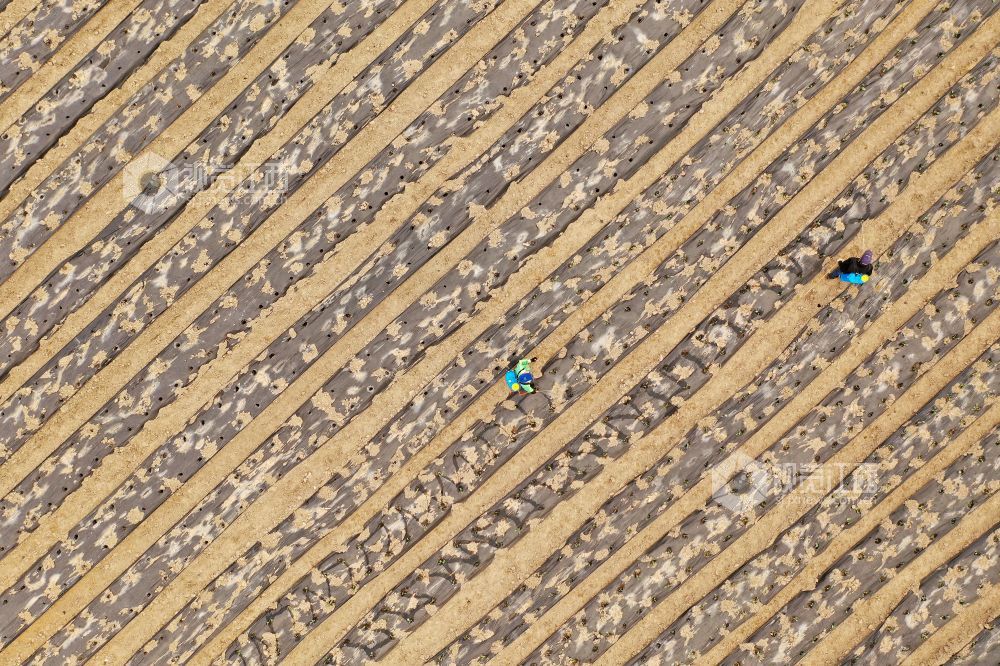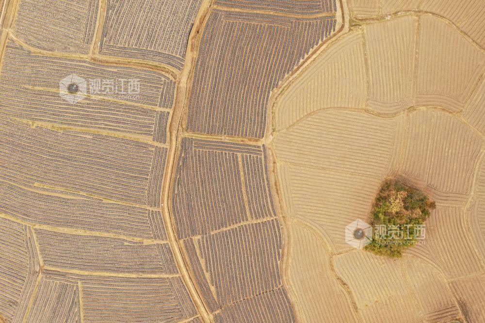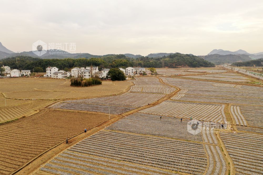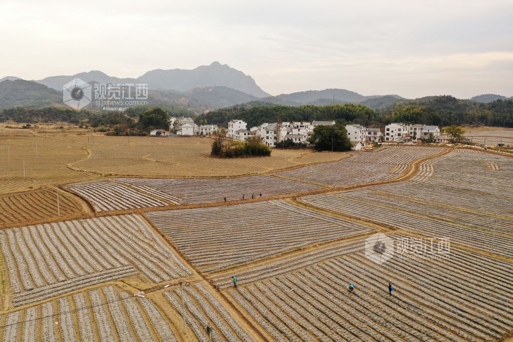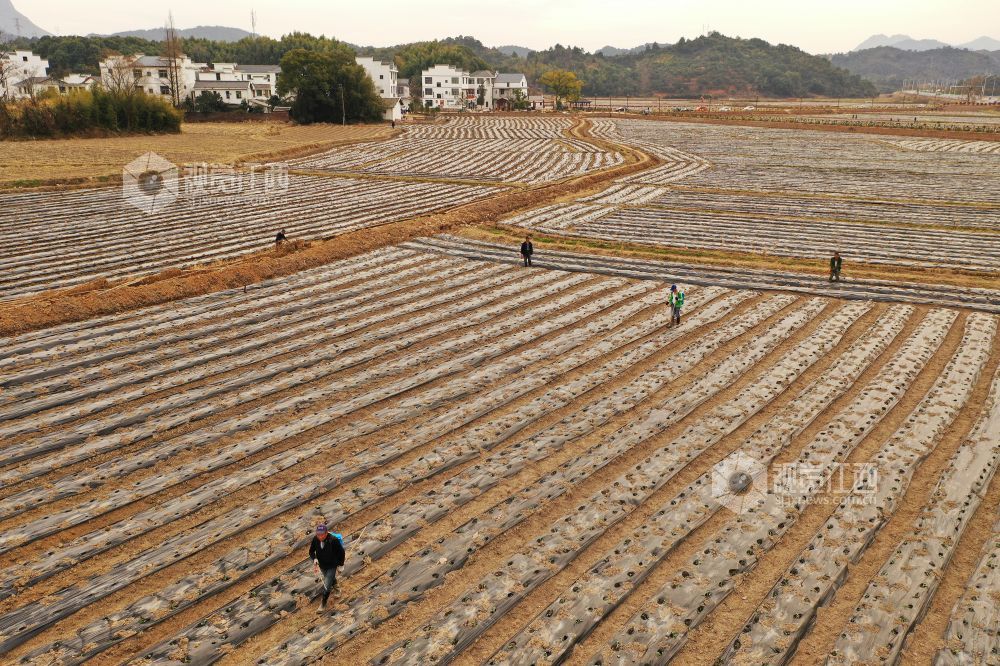 2021年1月21日,航拍江西省上饶市铅山县永平镇老李家村民正在田间劳作,耕作好的农田,阡陌纵横犹如铅笔画。近年来,铅山按照“产业兴旺、生态宜居、乡风文明、治理有效、生活富?!钡淖芴逡螅罅Ψ⒄瓜执枋┡┮怠4舜我壹杜┮盗菲笠?,累计吸引投资2.38亿元,建设千亩有机蔬菜基地,发展现代设施农业,发展田园观光旅游,推动村级产业可持续发展,实现产村融合、农旅融合的目标。同时吸纳村剩余劳动力300多人,预计可实现年人均收入约4万元。