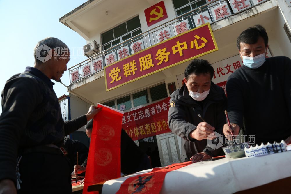 1月20日,牛年春节到来之际,余干县文联组织县书法家协会、县文艺志愿者协会深入梅港乡青山村开展送春联活动,为大家送去新春祝福。