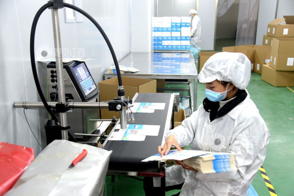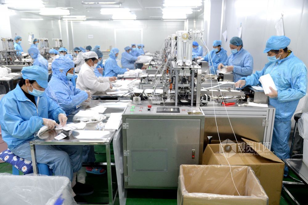 2021年1月23日,地处江西省南丰县工业园区的江西康蓝医疗器械有限公司生产线上,员工们正在加大马力生产一次性口罩,完成出口订单任务。