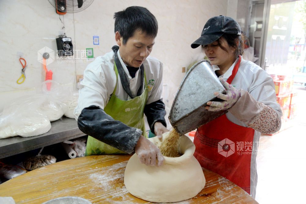 在琴城镇果园新村,俆春财夫妻俩经营着一家春财食品加工店,临近春节,店内的生意愈发红火起来。作为主打产品的灌芯糖和麻片糖更是拥有着不少“忠实粉丝”。南丰县的灌芯糖,至今已有800多年的制作历史。发麦芽、浸糯米、熬糖、炒馅、拉糖、做斗、切糖……等10多道工序。南丰灌芯糖因色泽如银、香脆可口、甘甜若饴,畅销北京、上海、重庆、浙江、广东、福建以及江西等地,成为大众喜爱的传统食品,是春节期间招待客人、馈送亲友的传统礼品。