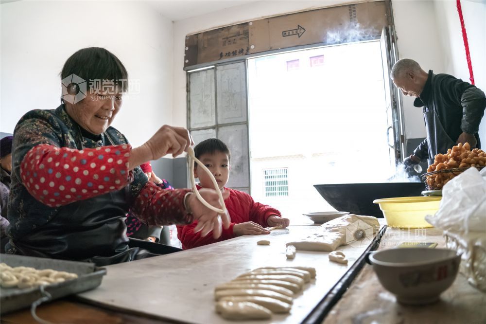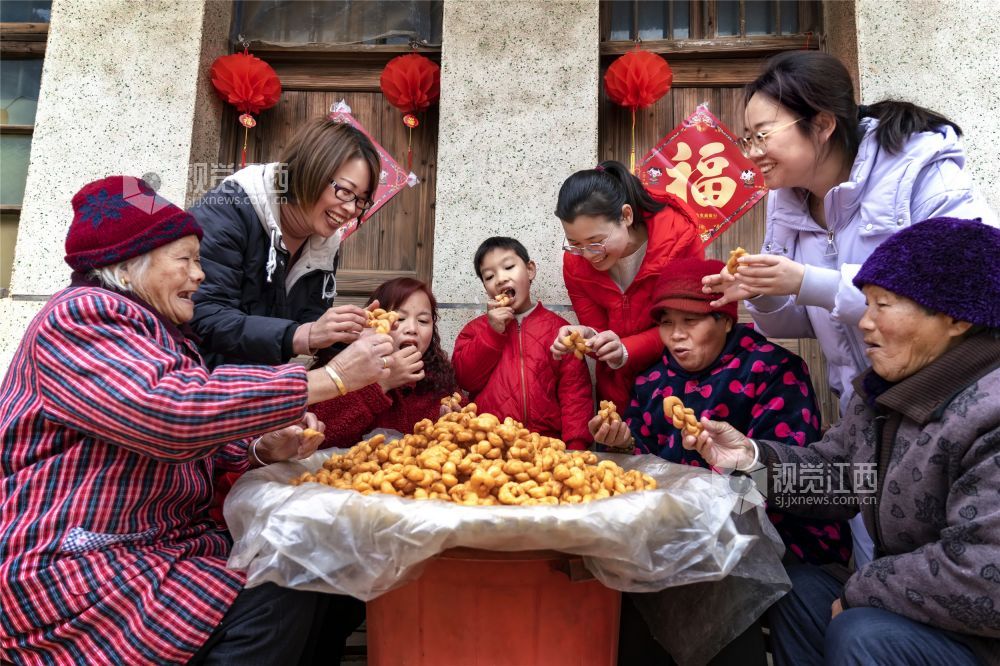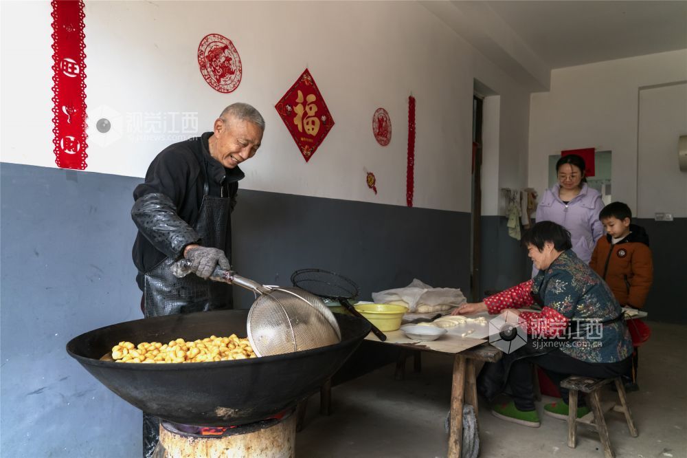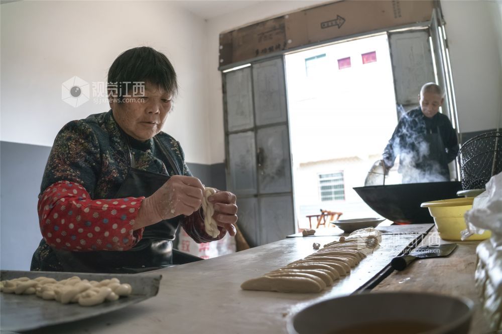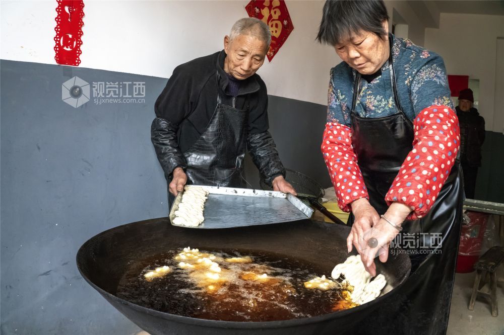 1月27日,在江西省新余市鹄山镇窝里村委脑上老屋村一个农家小屋,村民正在制作麻花。鹄山镇有做麻花的习俗,每天生产大量麻花来应对春节市场客户需求,成为鹄山增收致富的好门路。