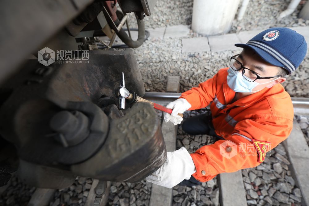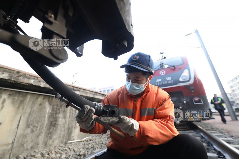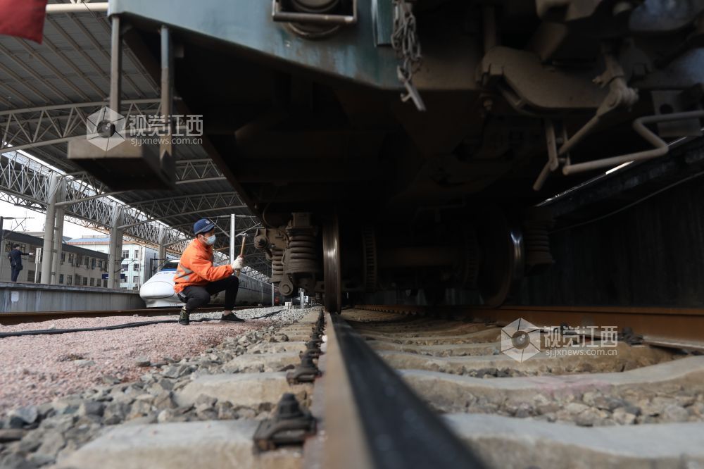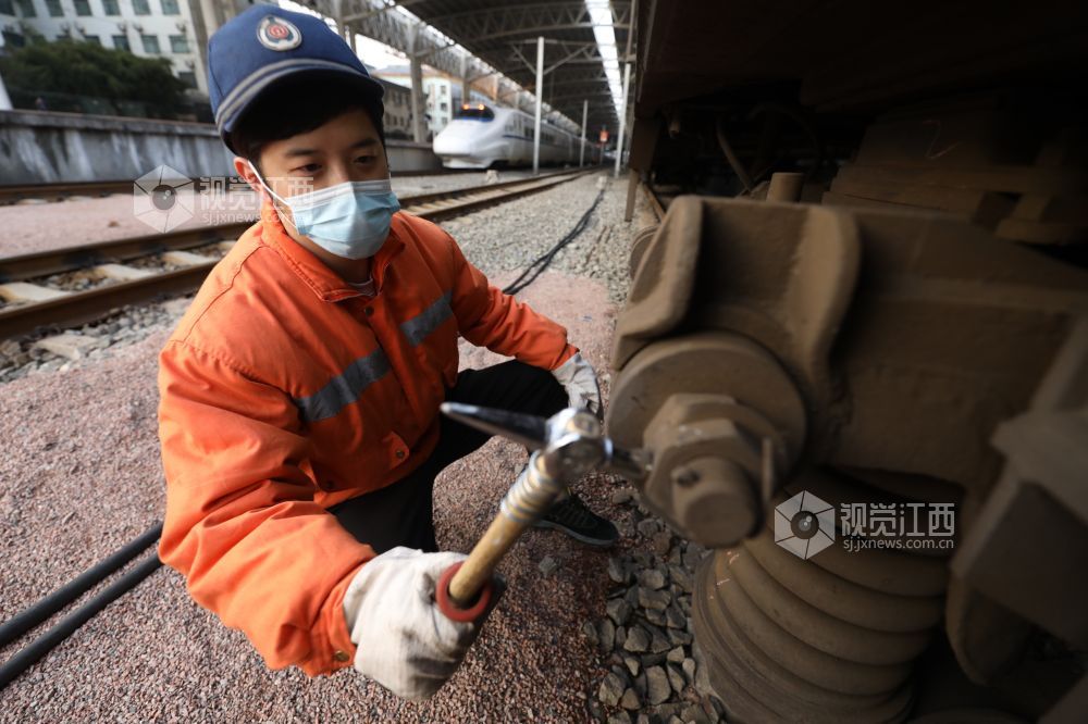 1月28日,春运如期而至。受疫情影响,南昌站的客流没有往年那么熙攘,但是中国铁路南昌局集团有限公司南昌车辆段的驻站检车员们依然坚守岗位,为南来北往的列车“把脉问诊”,确保旅客列车安全运行默默奉献。