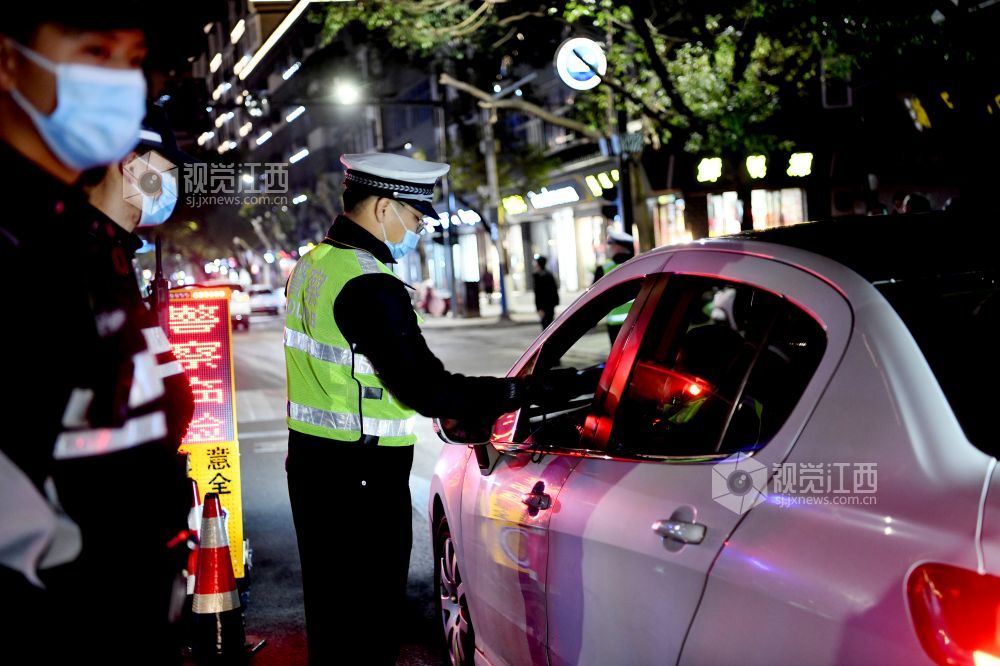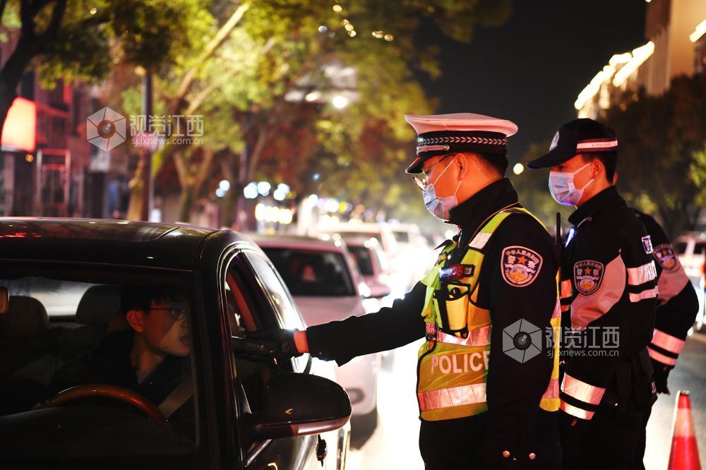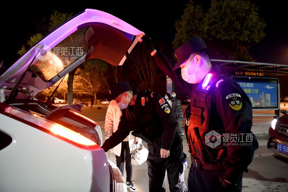 2021年1月28日,在江西省上饶市铅山县河口镇狮江大道,该县民警正在对过往车辆进行检查。