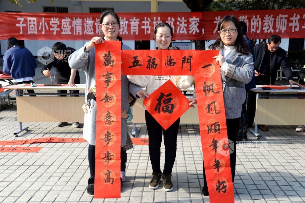 2021年1月31日,江西省抚州市南丰县子固小学开展写春联送祝福活动,为教师们送上新春祝福。