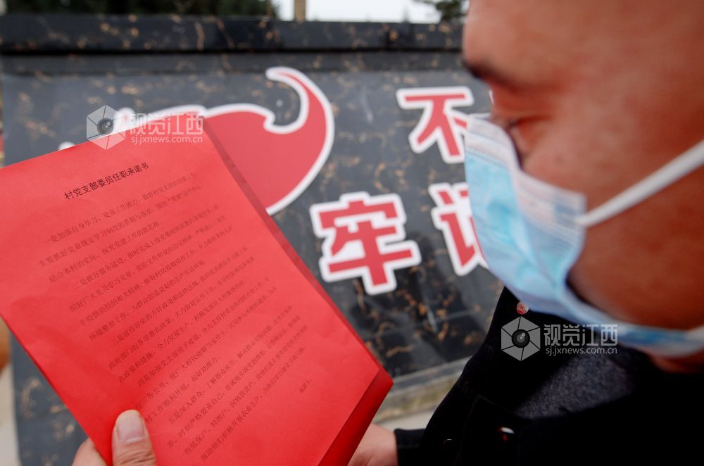 2021年2月2日,江西省德兴市黄柏乡港西村,新当选的村党支部委员喜领乡党委纪委送来的廉政“红包”。