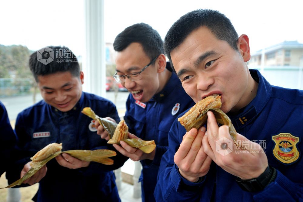 当天下午,家住江西省德兴市区的三名已经退休王彩荣、王彩梅在小妹王彩兰的倡议下,自带超过200个粽子的食材来到德兴市消防救援大队,和春节不能回家的消防指战员过小年、包粽子,使这些长期奋战在战斗一线的30多名消防指战员,在异地也能开心感受到“妈妈的味道”。