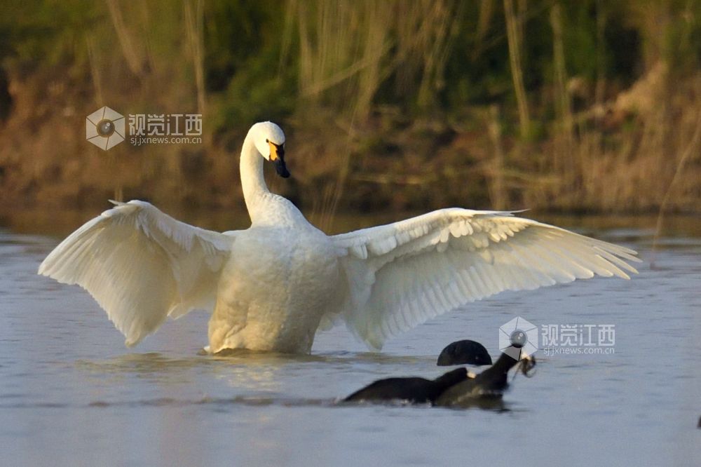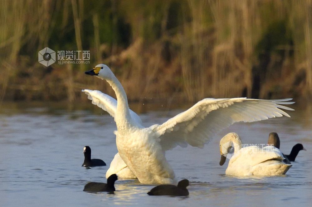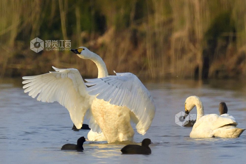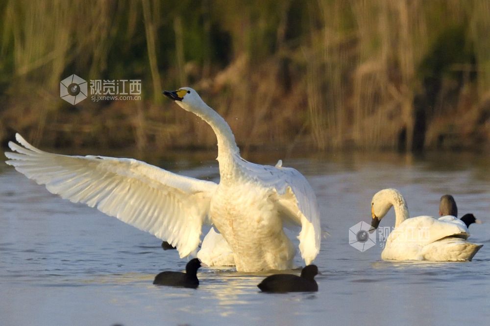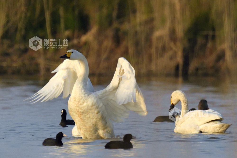 白天鹅在南矶湿地幸福、快乐地生活。1月24日 摄