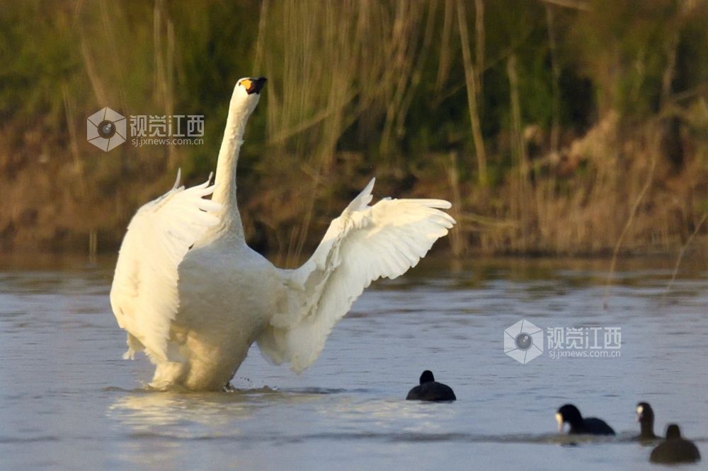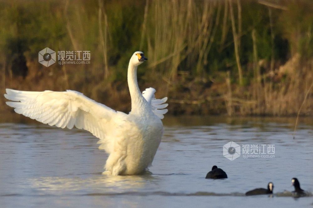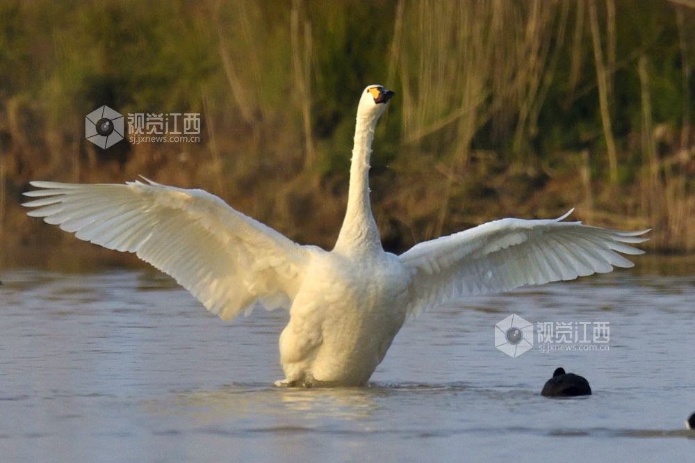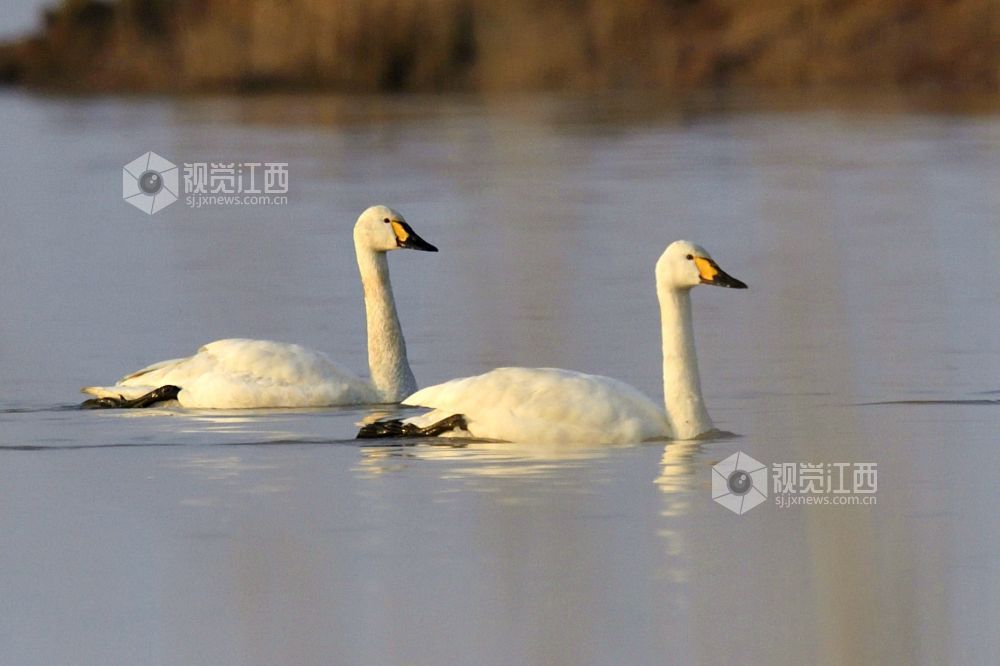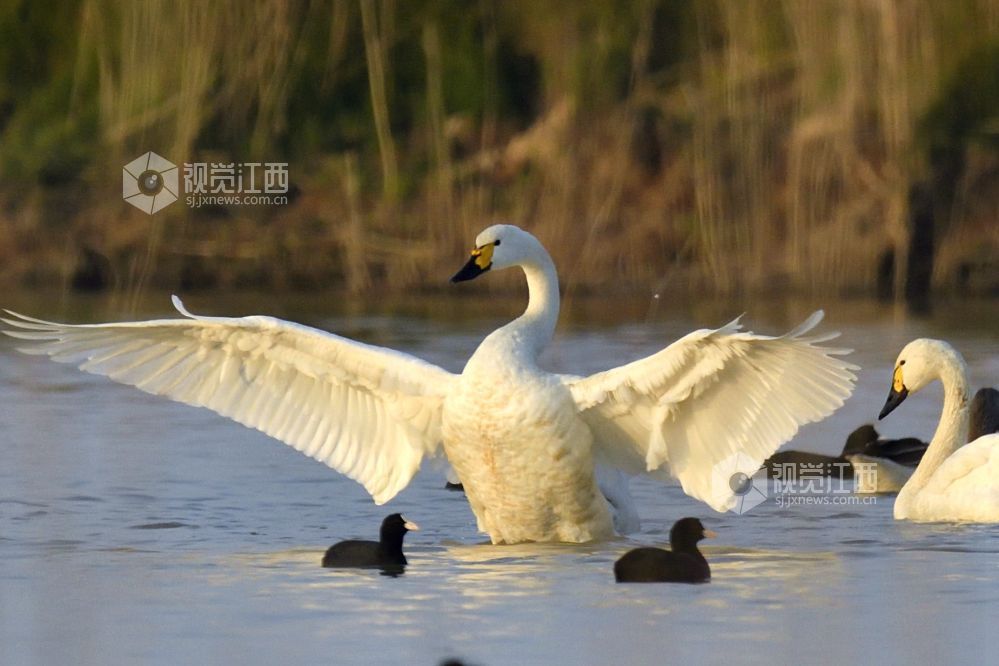 白天鹅在南矶湿地幸福、快乐地生活。1月24日 摄