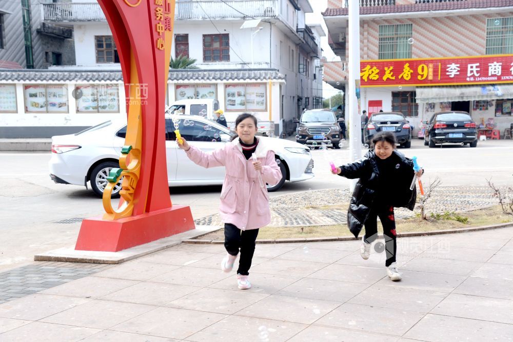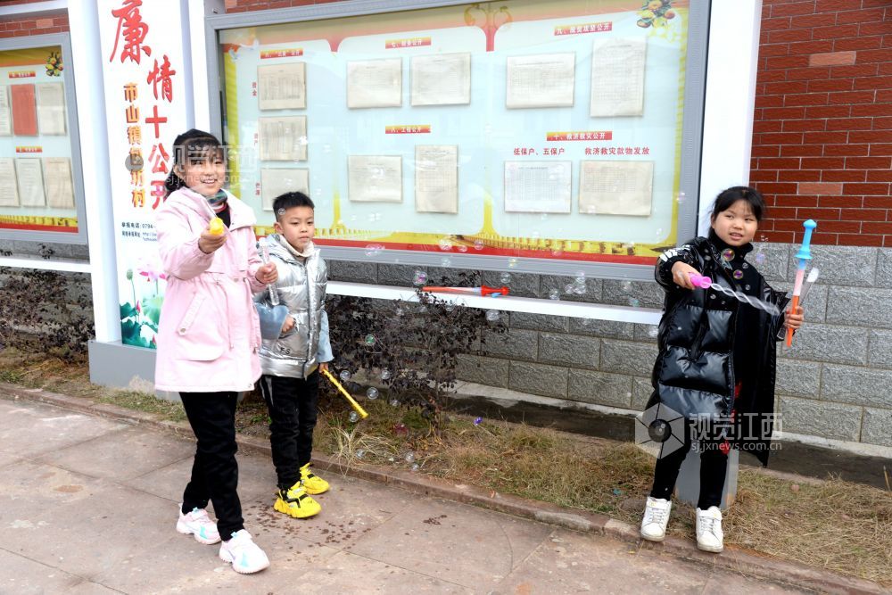 2021年2月13日上午,在江西省抚州市南丰县市山镇包坊村党群服务中心文化广场,几名小朋友在玩吹泡泡。当天,阳光明媚,风和日丽,江西省抚州市南丰县市山镇包坊村的村民们纷纷走出家门,来到村文化广场,感受春光,乐享春节长假。