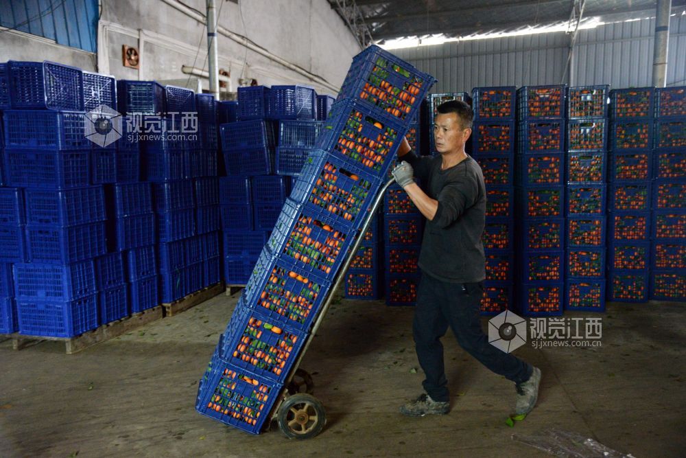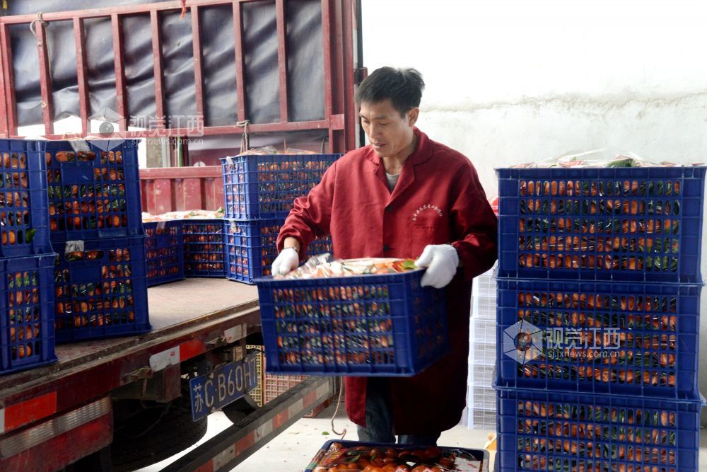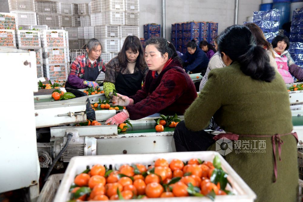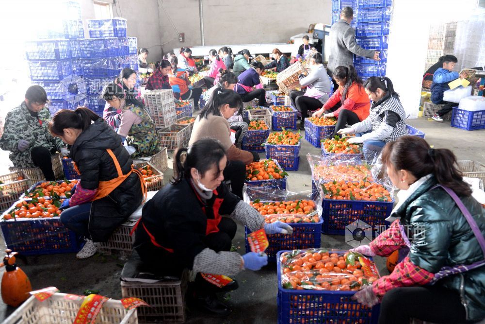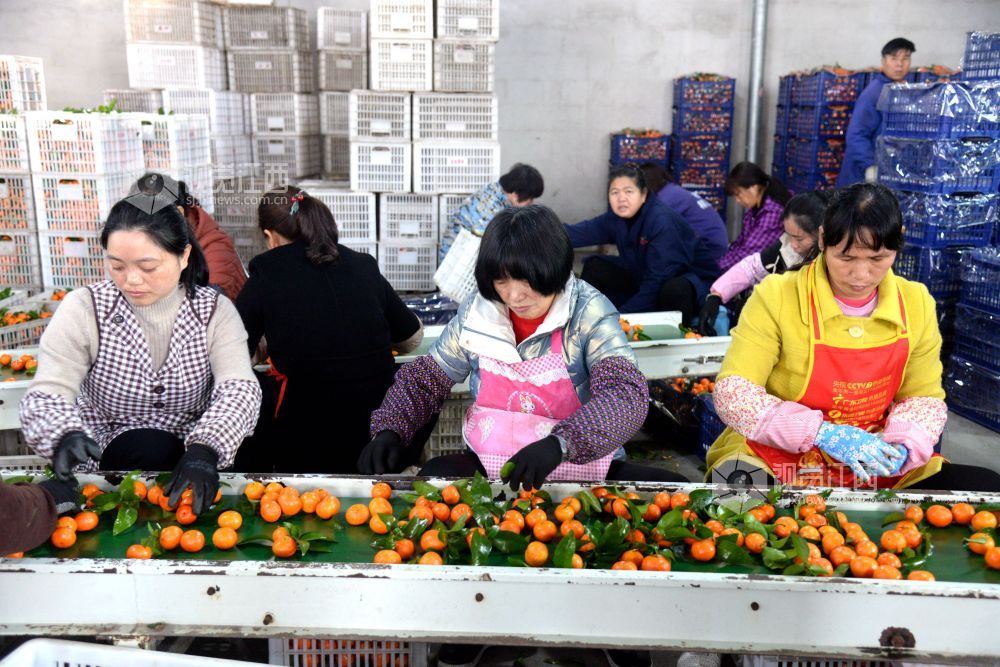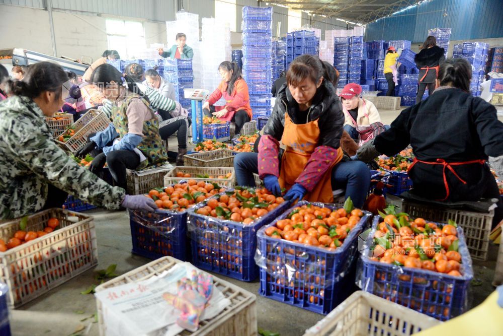 2021年2月13日,正月初二,江西省抚州市南丰县互信果品合作社组织农民工分拣、加工包装南丰蜜橘,准备销往全国各地,以满足春节市场消费者的需求。