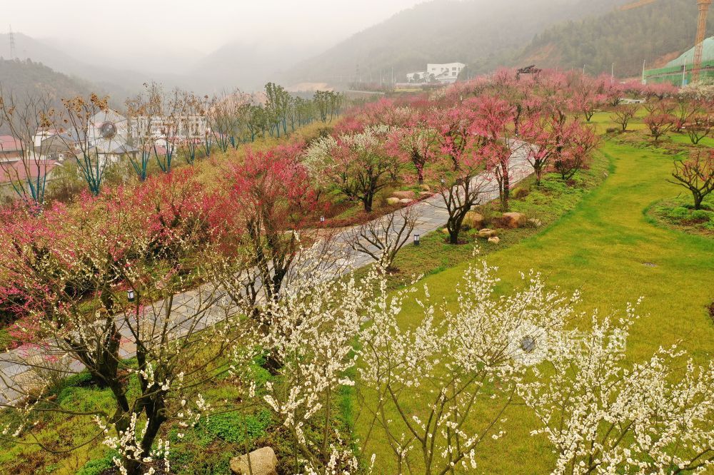 铅山葛仙村有超过2000株红梅、青梅、垂枝梅,悄然绽放的梅花已将这里渲染成漫山遍野的红色,美如仙境。盛放的花枝辗转于小桥流水之间,空气中是梅花若有似无的冷冽香气,暗香梅花开满园,别有一番滋味。
