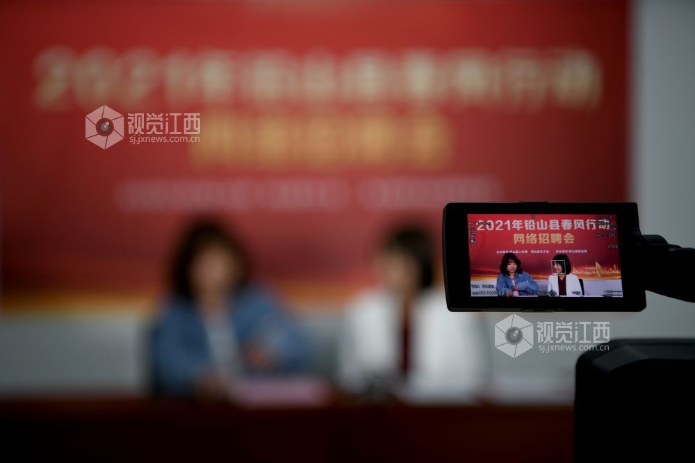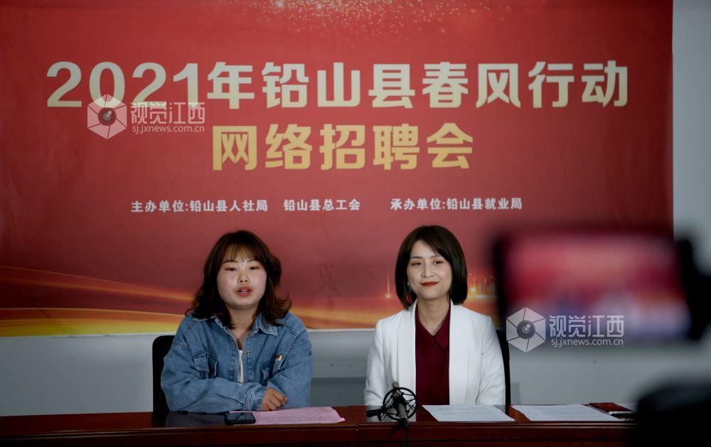 2021年2月17日,在江西省上饶市铅山县就业局,铅山县春风行动网络招聘会直播正在火热进行中。
