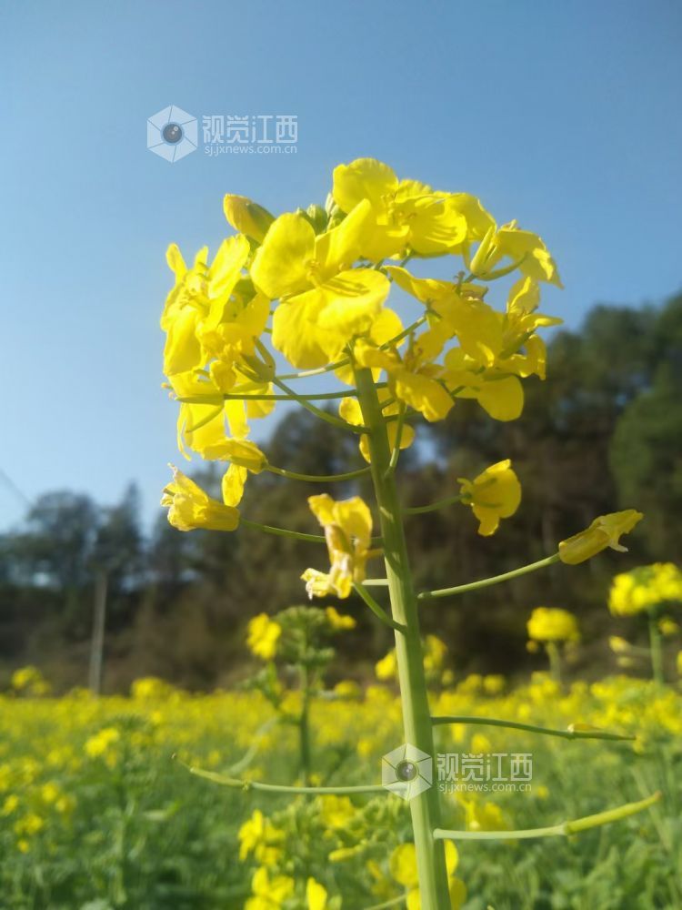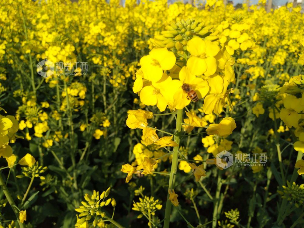 春风和煦,阳光普照。2月16日,在江西省永新县石桥镇日光村附近的田野,一田一田金灿灿、黄嫩嫩的油菜花竞相绽放。放眼望去,蓝天清澈、白云悠然,油菜花随风摇曳,蜜蜂在花间飞舞,花香混合着泥土的芬芳,在阳光的照耀下,盛开的油菜花像一片金色的海洋。