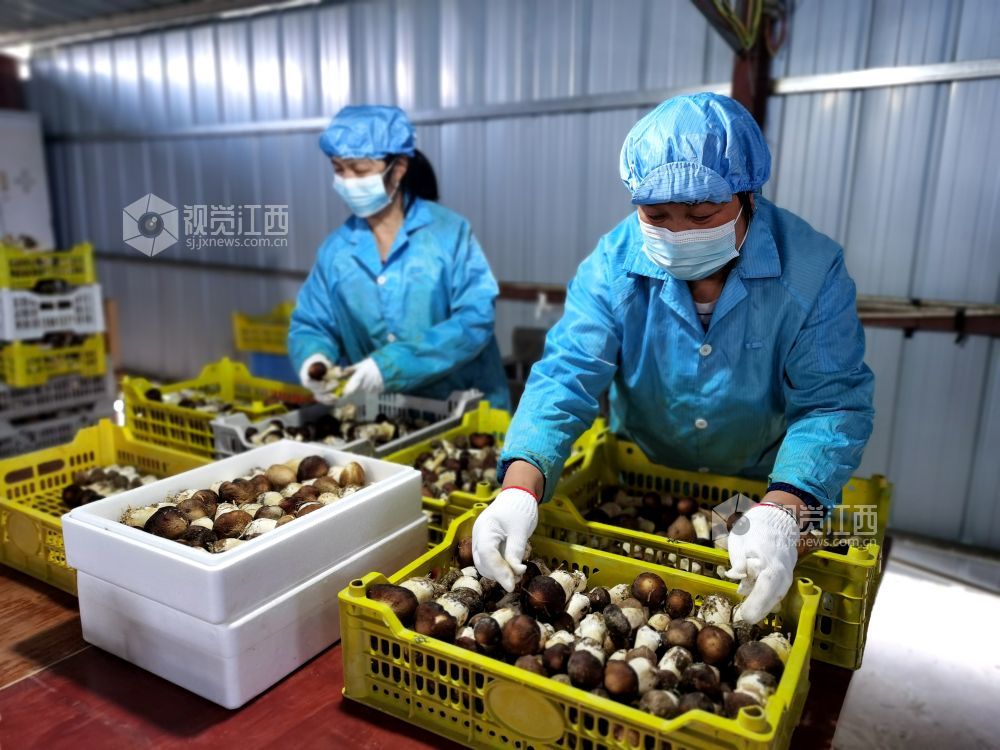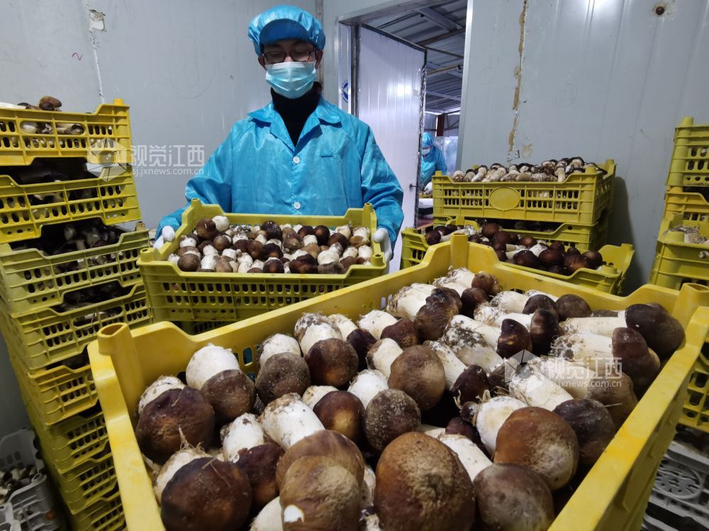 连日来,江西安福现代农业科技示范园的大球盖菇种植基地里,三三两两工人们正忙着采收蘑菇,一筐筐的饱满壮实的鲜菇被送到初加工车间,挑检分级后放入冷库,正准备发往各地。