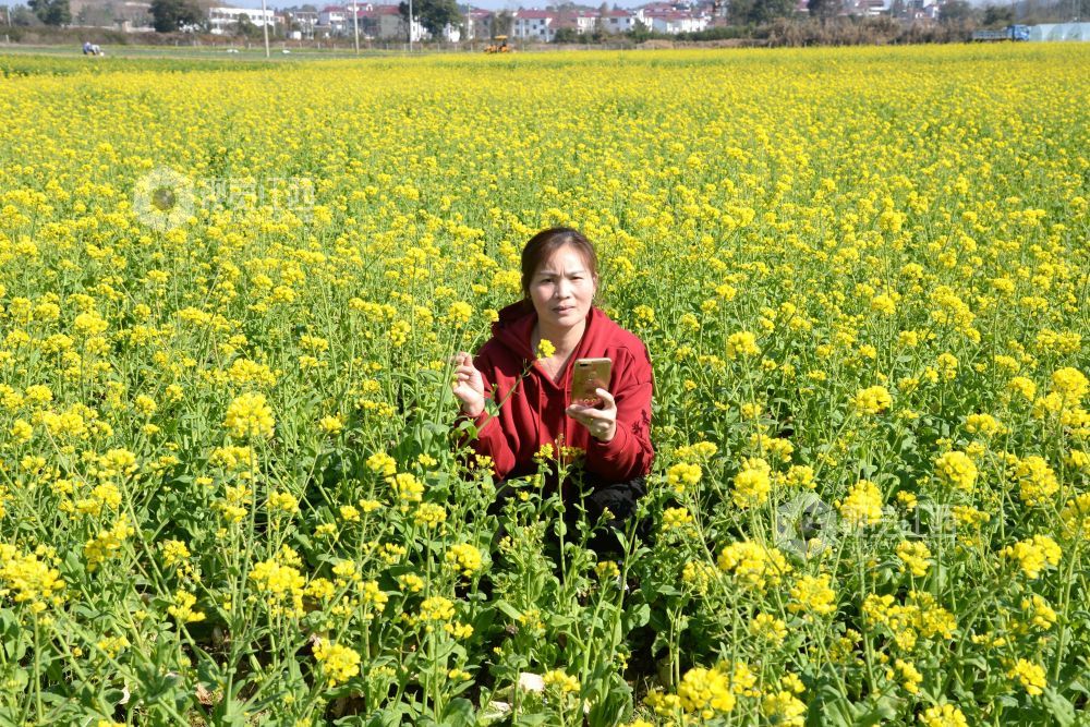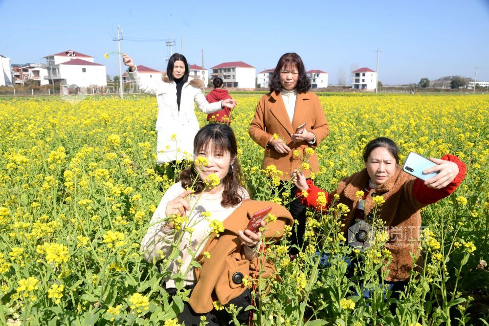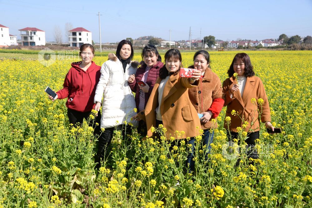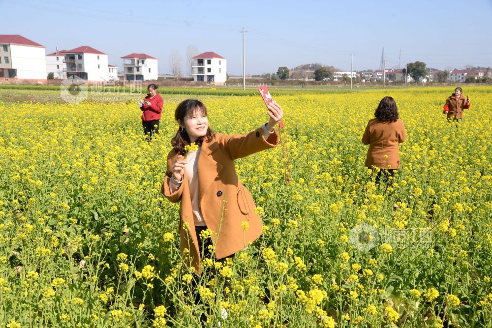 目前,江西省抚州市南丰县田间地头的油菜花竞相绽放,春意盎然,吸引周边和本地游客前来踏春赏花。