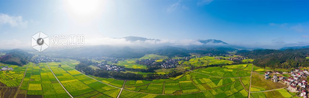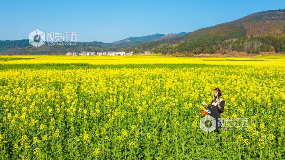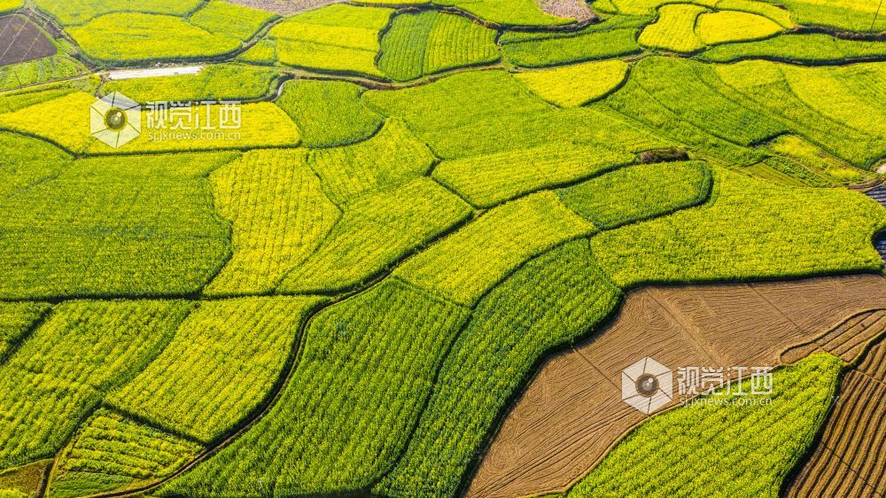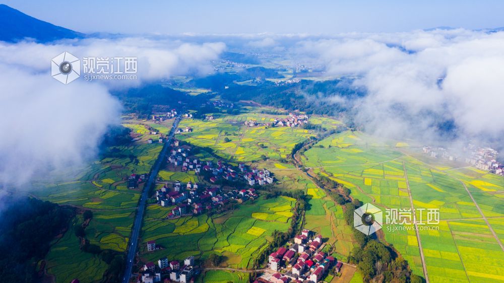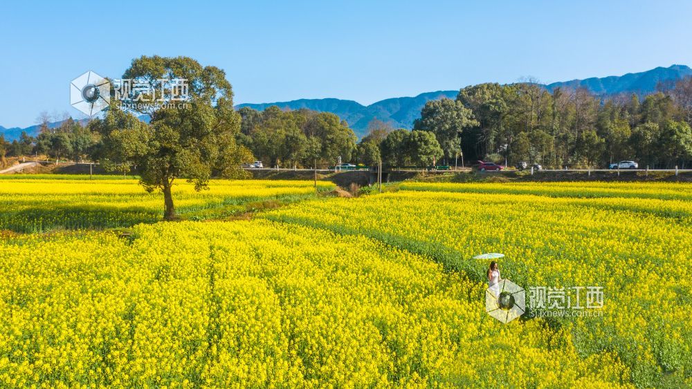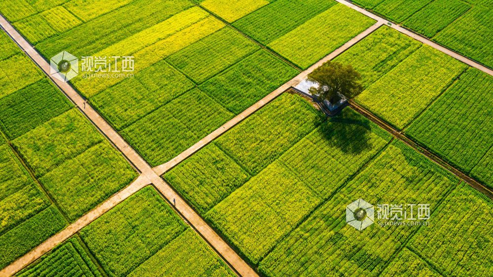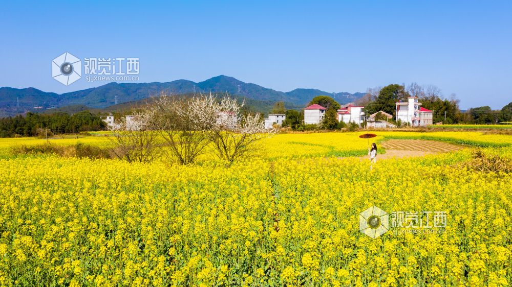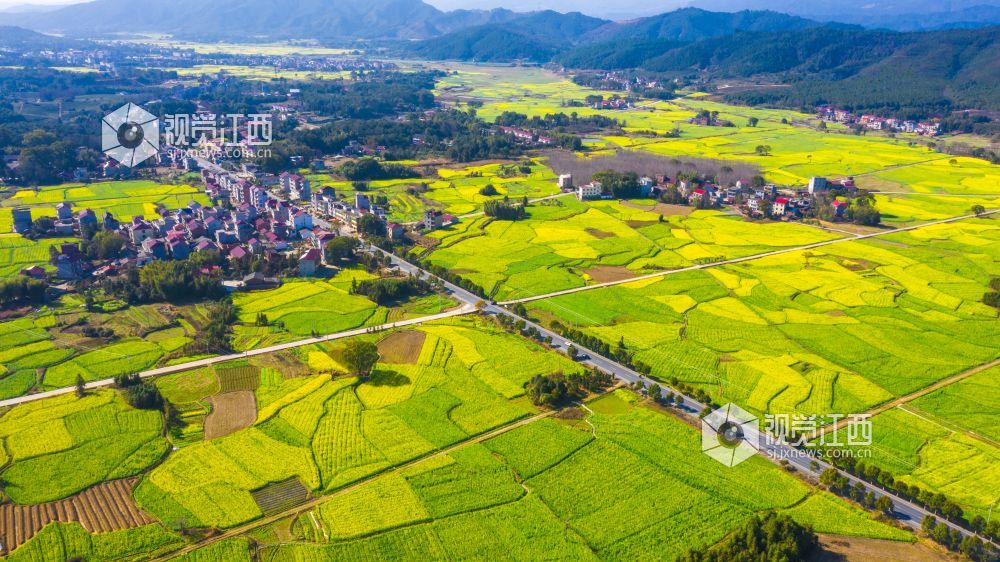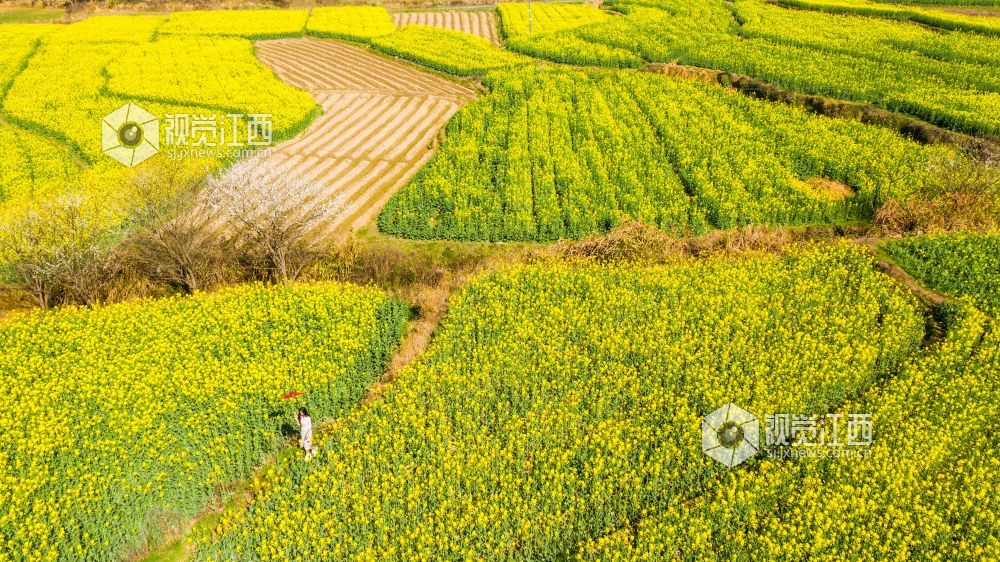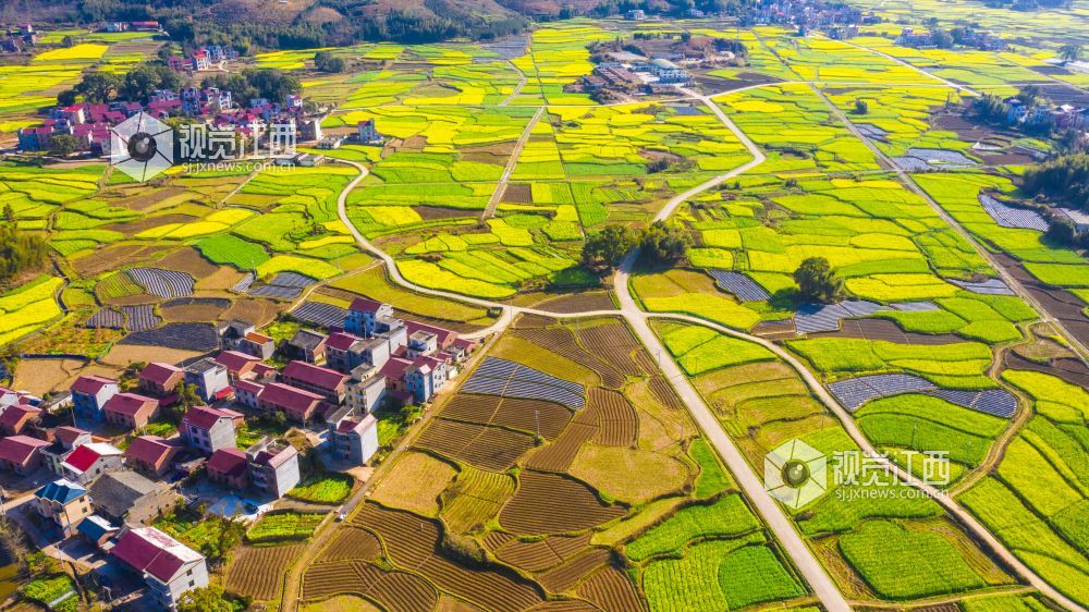 又是春暖花开的季节,蓝天白云下,油菜花金光灿烂,在江西省吉安市安福县洋溪镇,春意在田间地头慢慢铺开,万亩油菜花成片绽放,居民新村点缀其中,色彩鲜明、线条优美。从空中俯瞰,漫山遍野的油菜花层层叠叠,仿佛一片金色海浪在涌动,美不胜收。