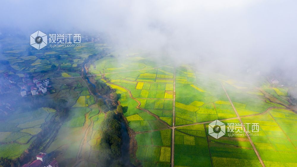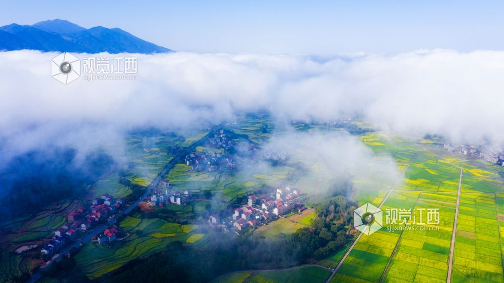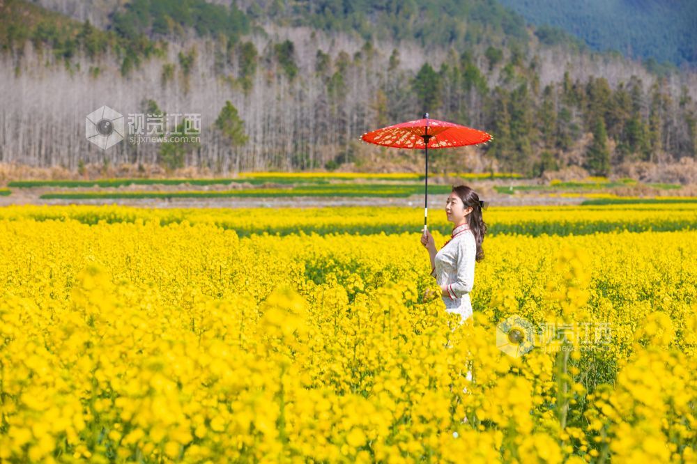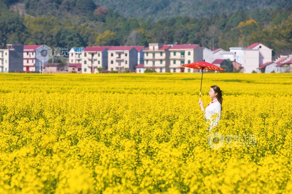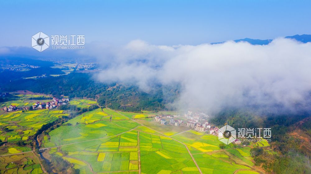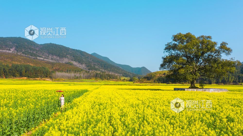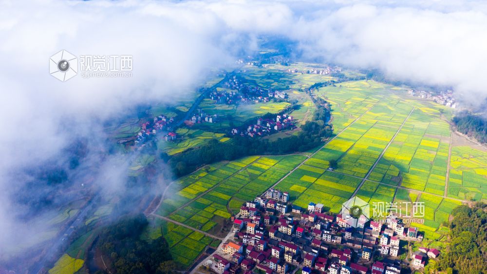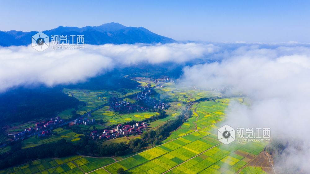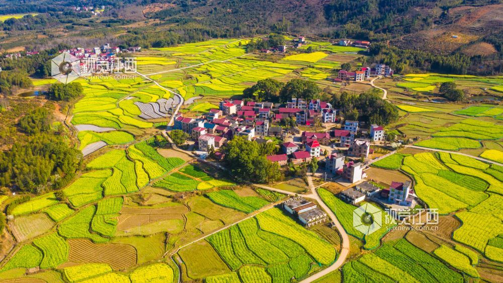 又是春暖花开的季节,蓝天白云下,油菜花金光灿烂,在江西省吉安市安福县洋溪镇,春意在田间地头慢慢铺开,万亩油菜花成片绽放,居民新村点缀其中,色彩鲜明、线条优美。从空中俯瞰,漫山遍野的油菜花层层叠叠,仿佛一片金色海浪在涌动,美不胜收。