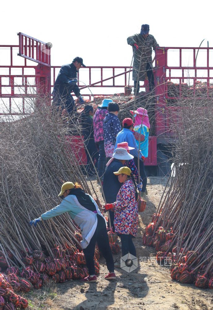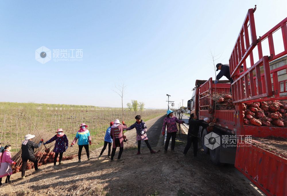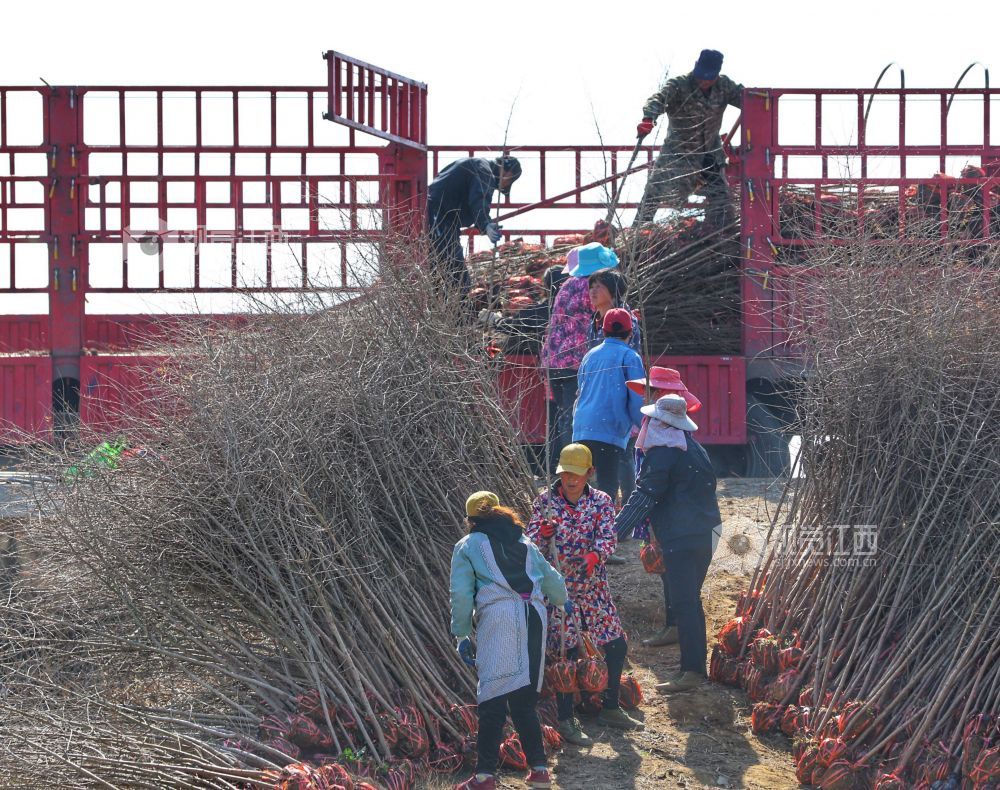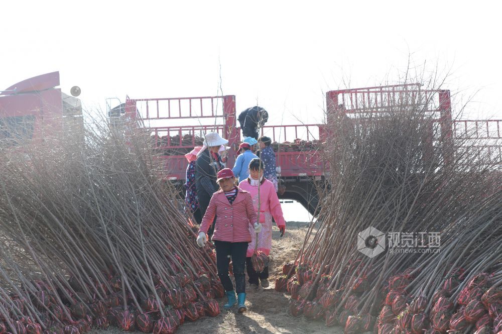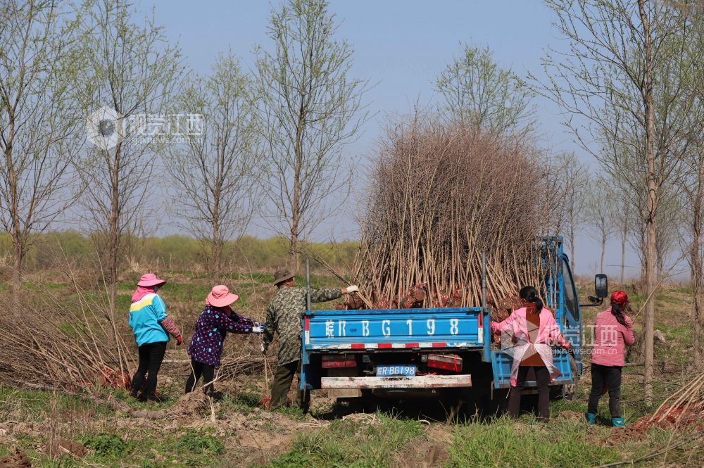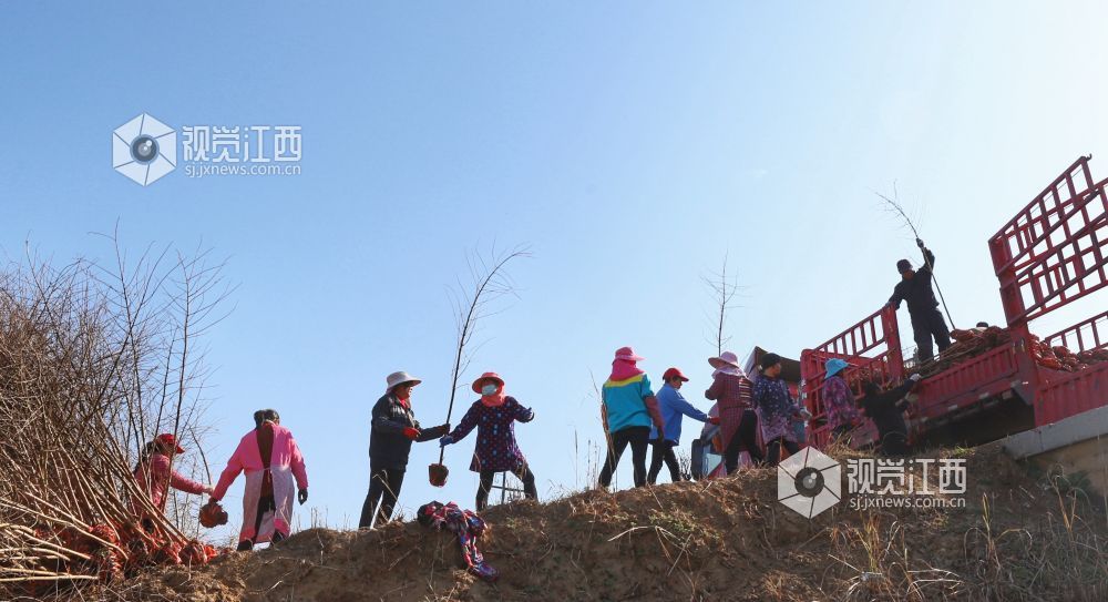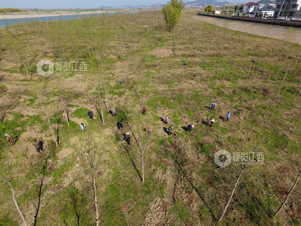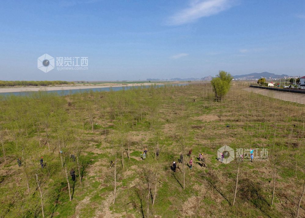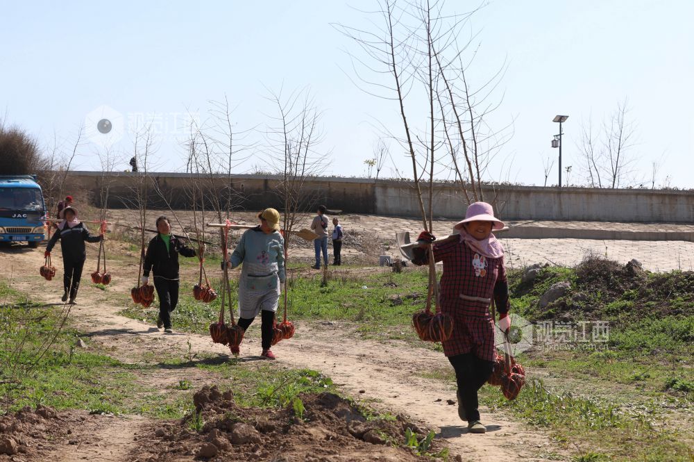 春光明媚,万物复苏,又到了为长江添绿增彩的时候。位于江西省九江市彭泽县芙蓉墩镇太字村的沿江大堤内,村民们正在搬运、挖坑、放苗、培土,一派热火朝天的工作场面。