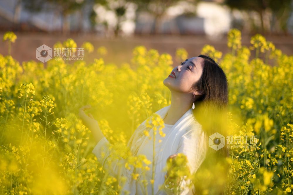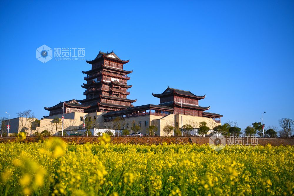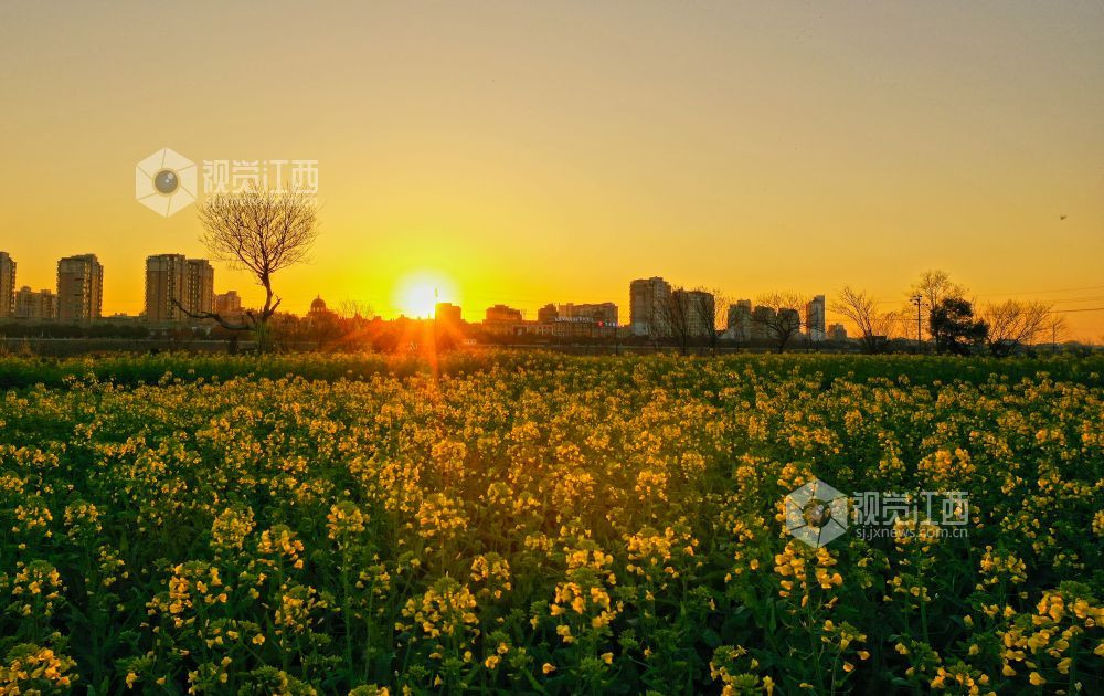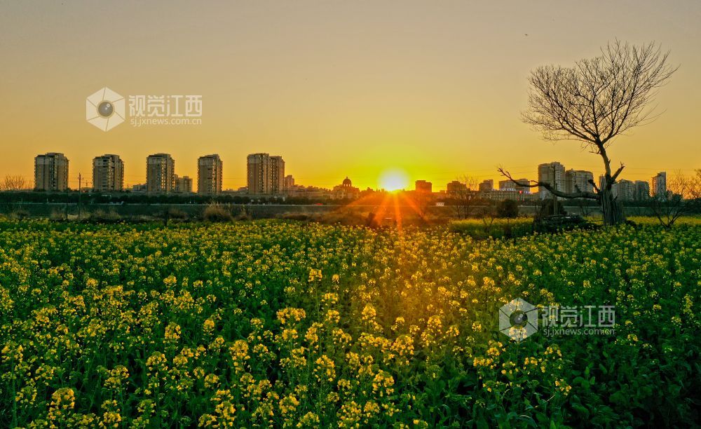 2021年2月19日,江西省上饶市铅山县河口镇,油菜花与周边城市建筑形成一幅美丽画卷,高楼下“满城尽带黄金甲”。春节假期,春风送爽,阳光和煦,铅山县的油菜花悄然绽放,市民朋友纷纷走出家门赏花。