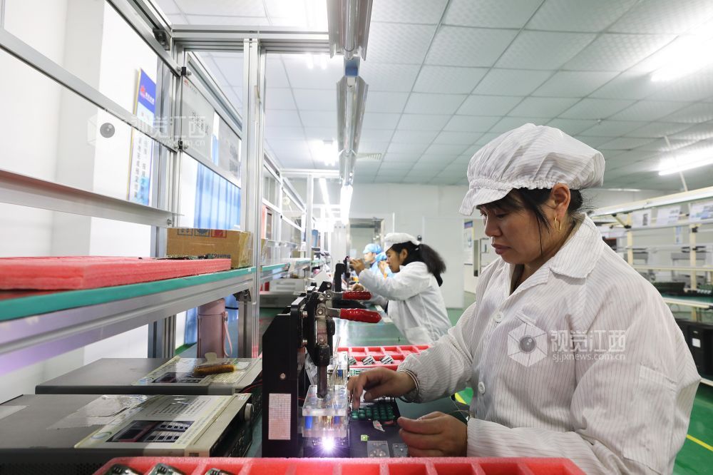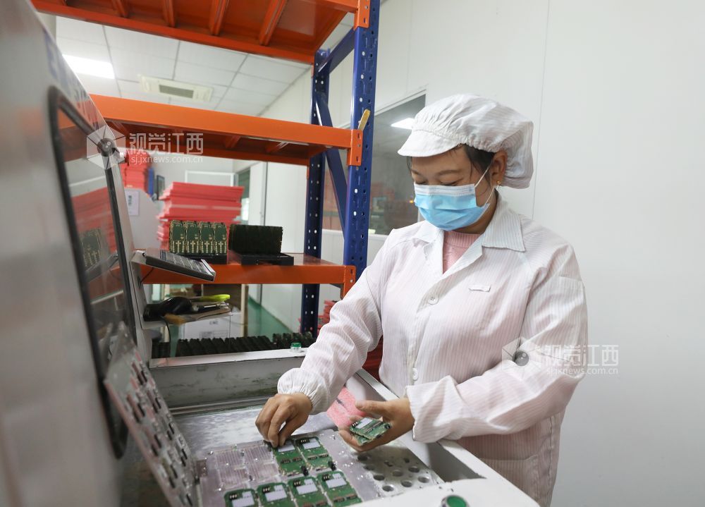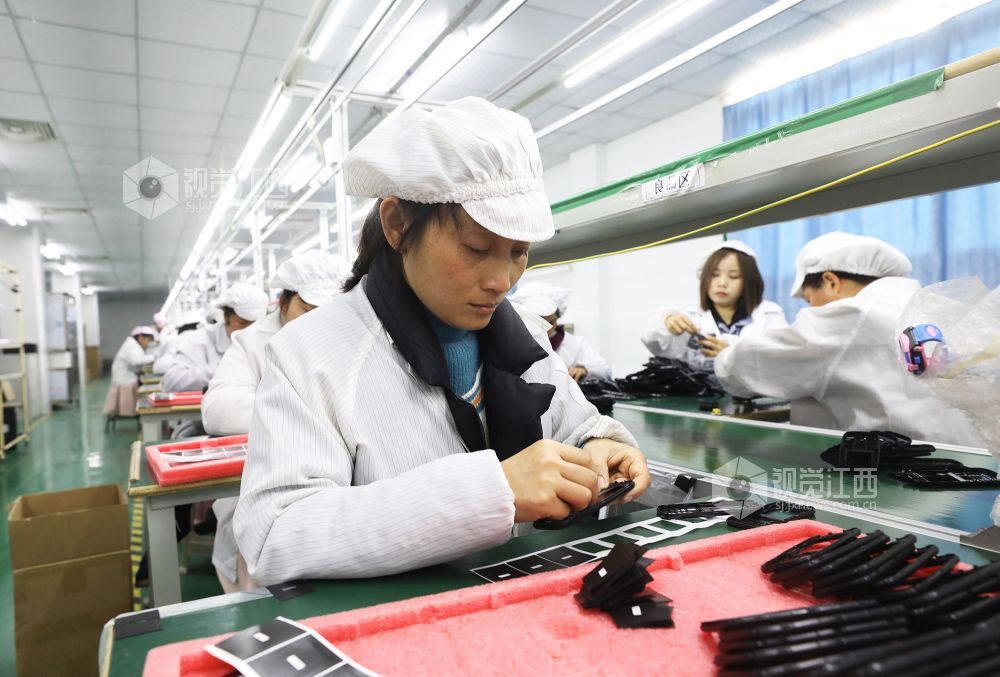 2月22日,在江西省莲花县一科技生产车间内,工人们正在开足马力生产智能手表和手机主板,一派繁忙景象。