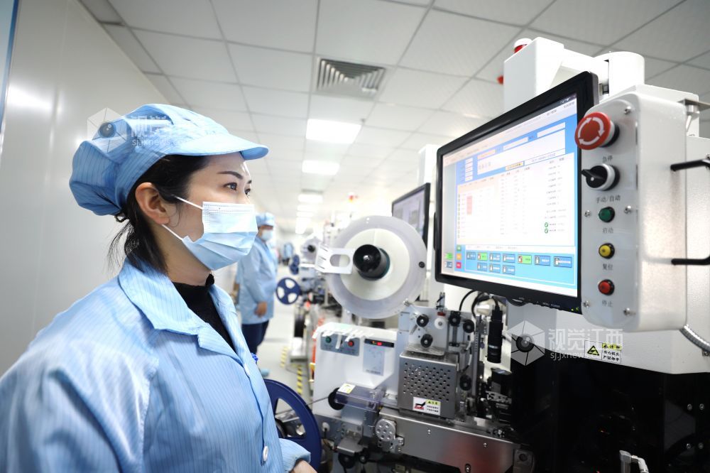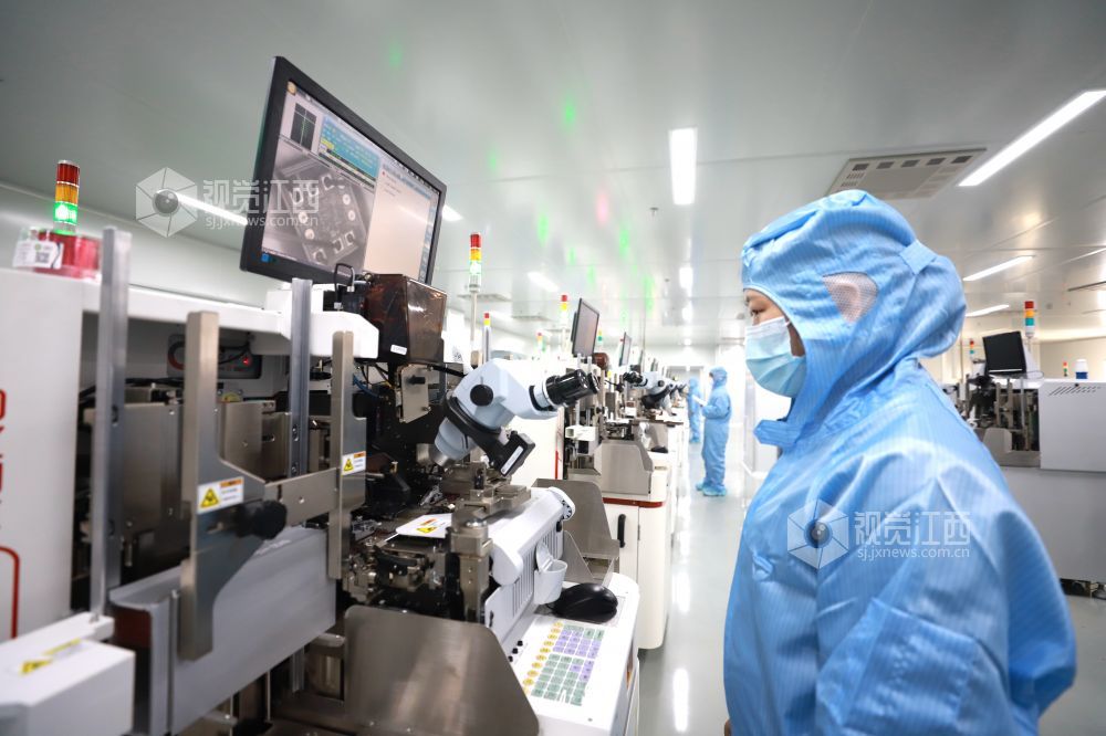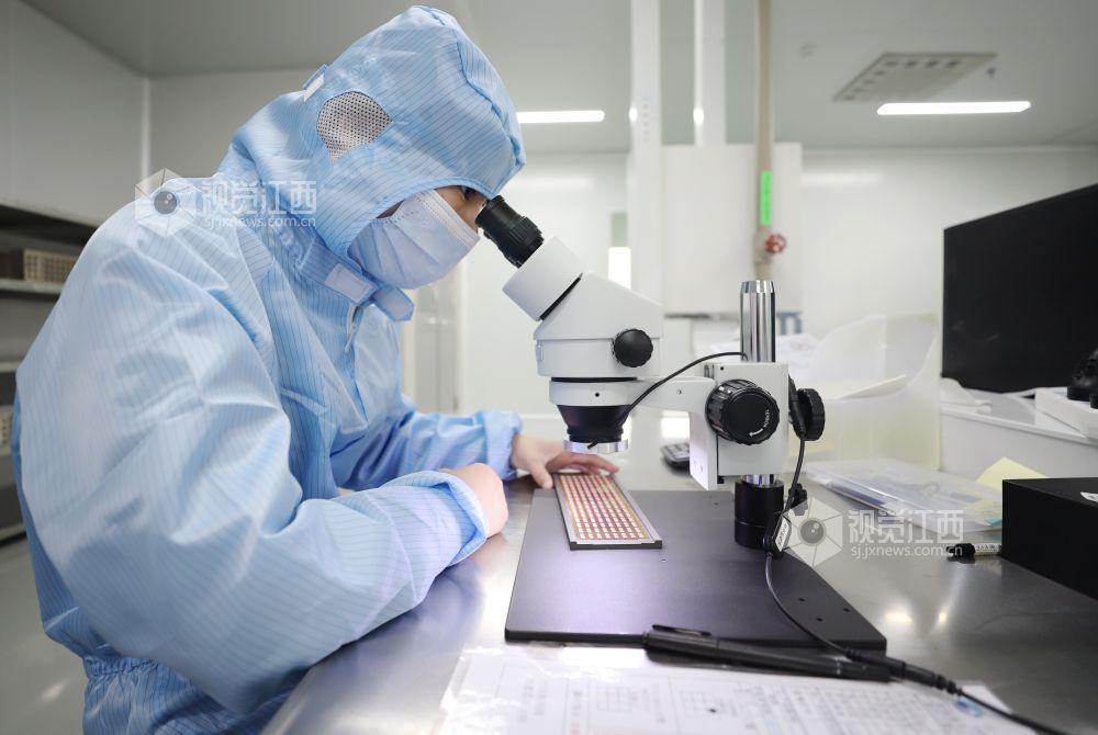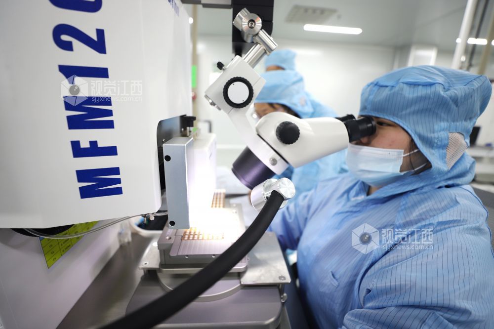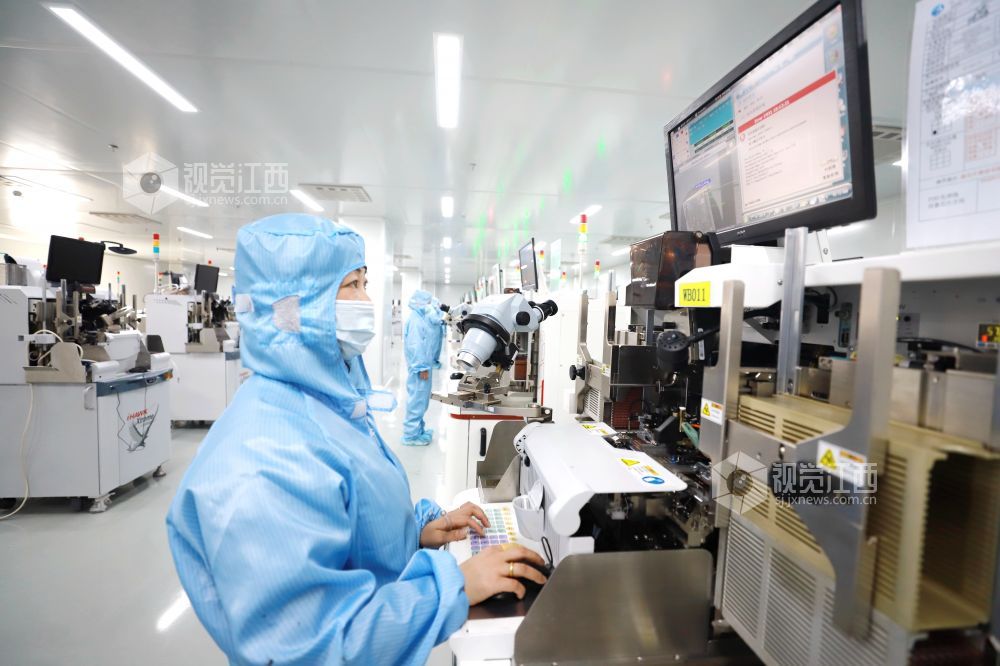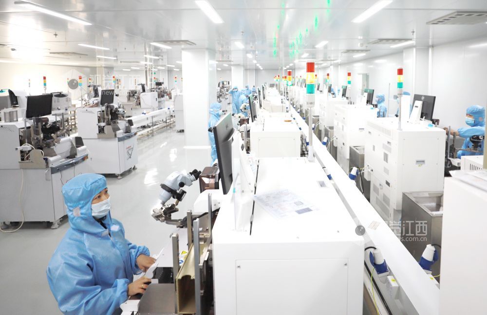2021年2月23日,江西省九江市湖口县高新技术产业园一公司的工人们正忙着生产高效电源驱动芯片。该企业节后订单充足,开足马力冲刺新年“开门红”。