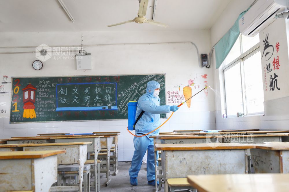 春季新学期开学在即,江西省九江市彭泽县各学校开展校内公共场所消杀作业,助力校园疫情防控工作,为即将返校的孩子们营造安全卫生的校园环境。