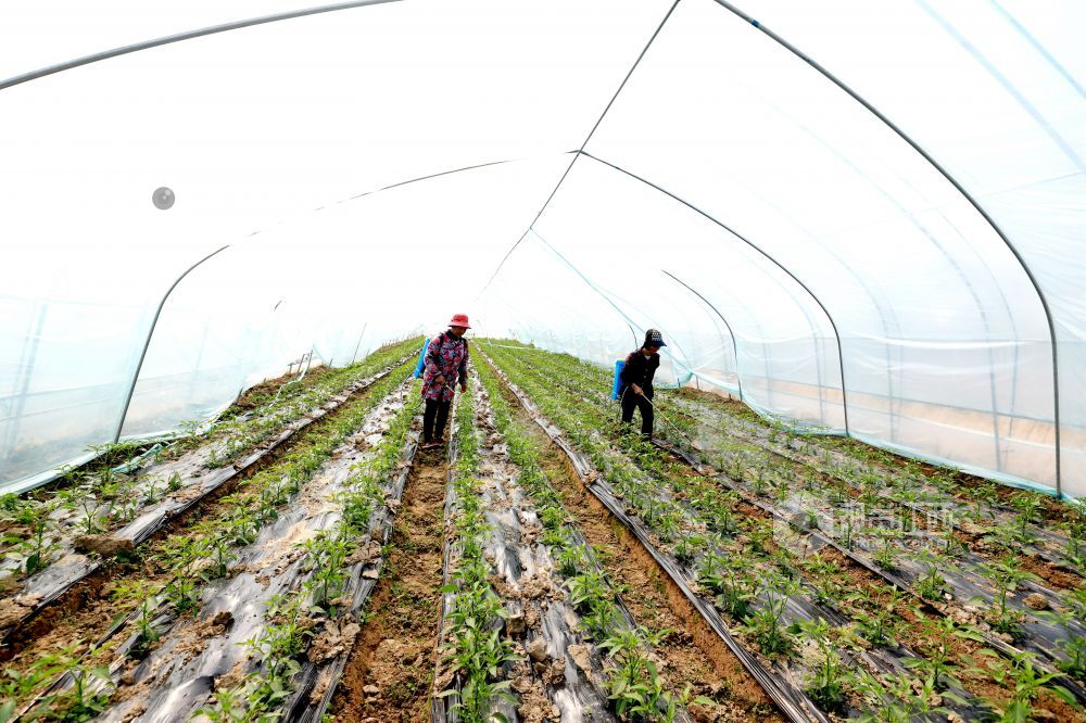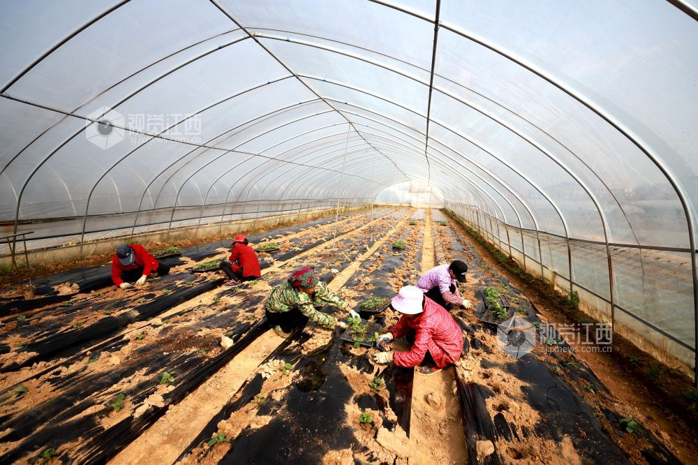 2021年2月24日,在江西省九江市湖口县城山镇团墩村产业扶贫基地蔬菜大棚内,农户正忙着给蔬菜移栽秧苗、开沟排水、洒药杀虫。春耕时节,各地田间地头随处可见农户忙碌的身影,一幅幅春耕图映入眼帘。
