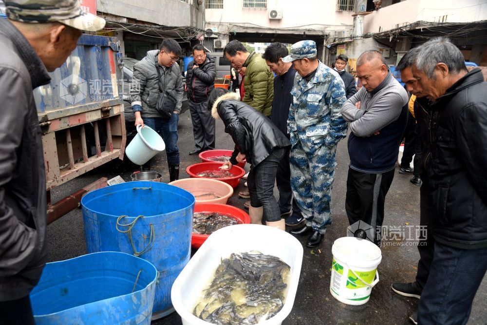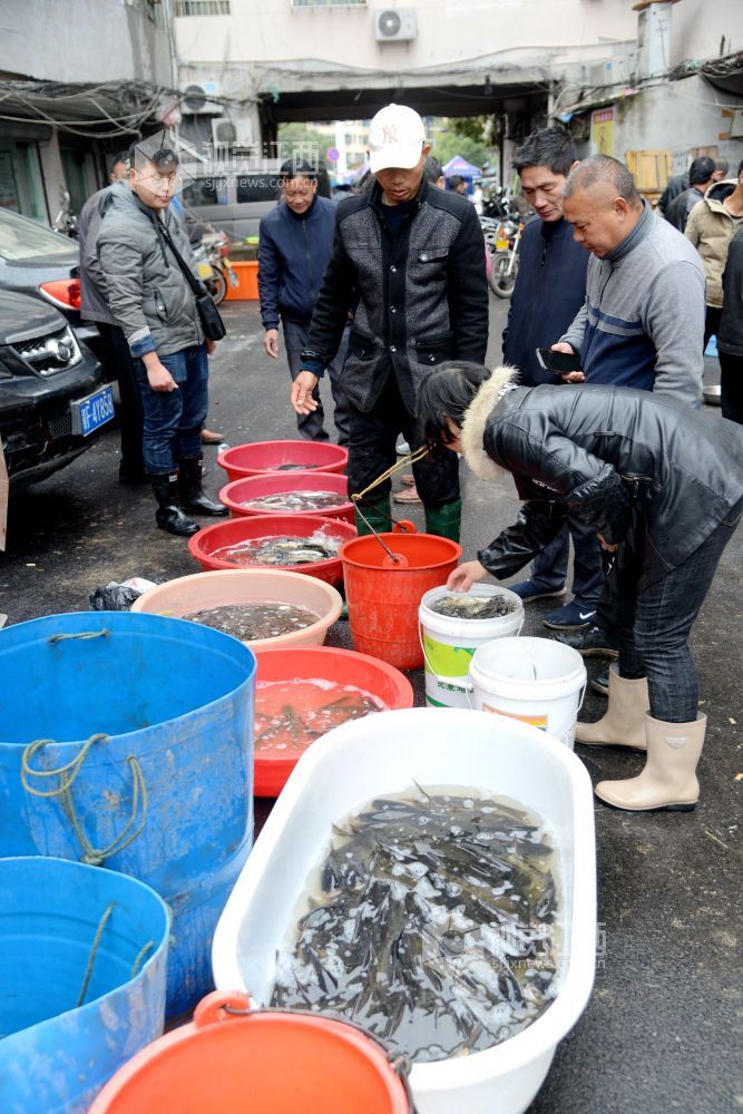 2021年2月27日,江西省抚州市南丰县琴城镇鱼苗市场,农民群众在选购鳙鱼、草鱼等鱼苗。