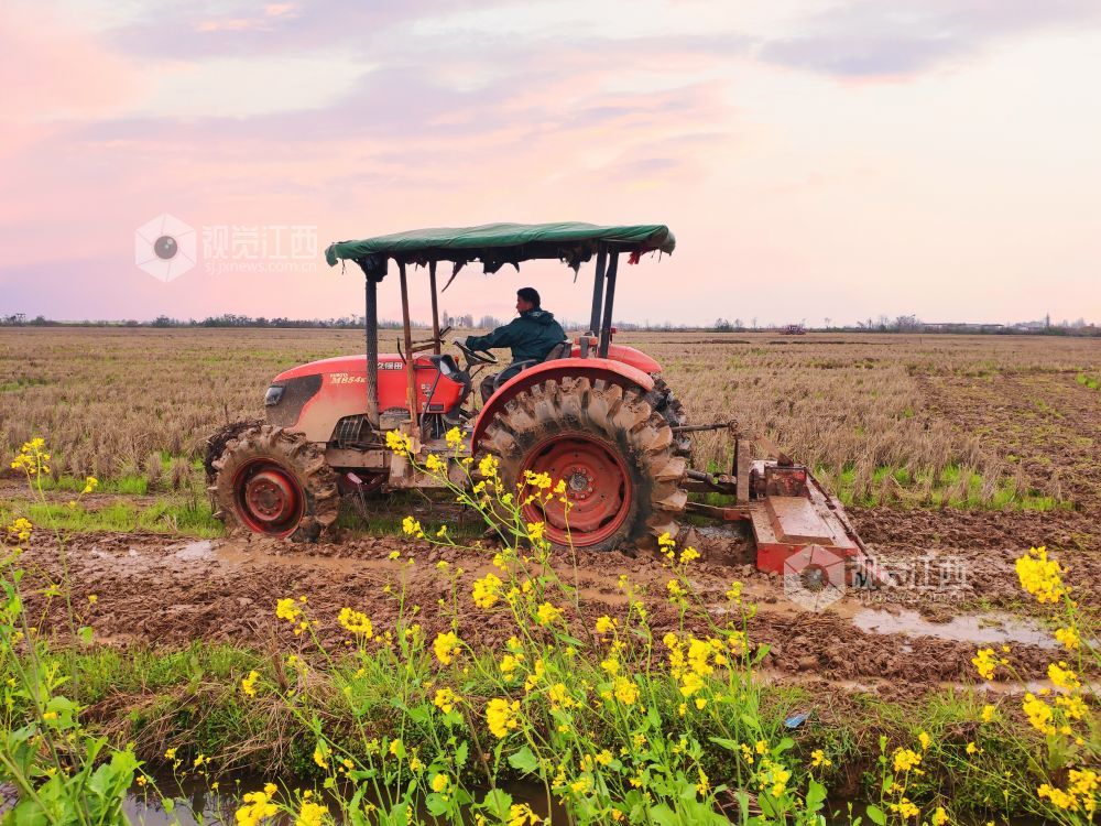 人勤春来早,春耕正当时。2月27日,在江西省余干县康山垦殖场广阔田野里机声隆隆,农户正驾驶着“铁牛”翻耕作业。连日来,当地农民因地制宜抢抓农时,有条不紊安排春耕、春种等农业生产,田间地头呈现出“铁牛”闹春耕的忙碌景象。
