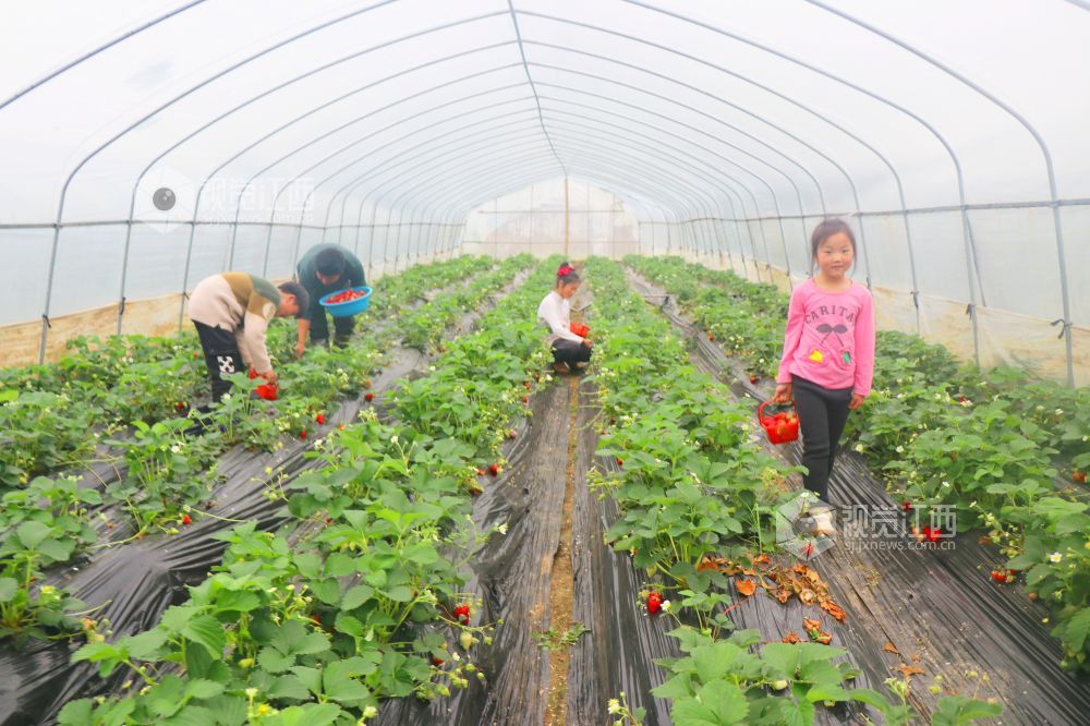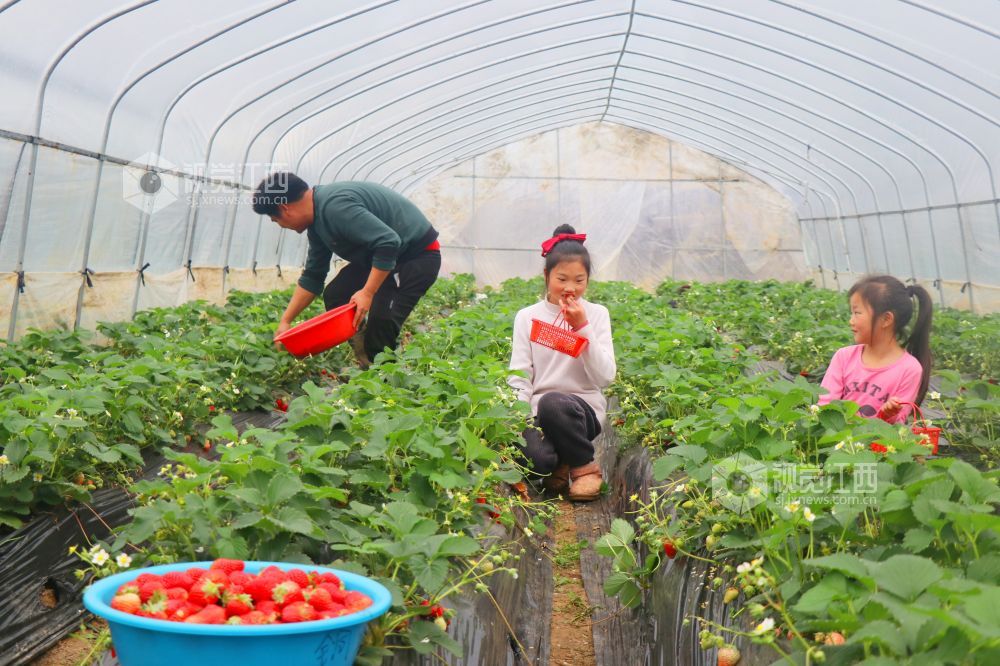 2月28日,江西省余干县乌泥镇铜鼓包村草莓种植大棚里,一个个鲜红饱满的草莓香甜诱人,吸引众多游客前来体验采摘,享受田园采摘乐趣。