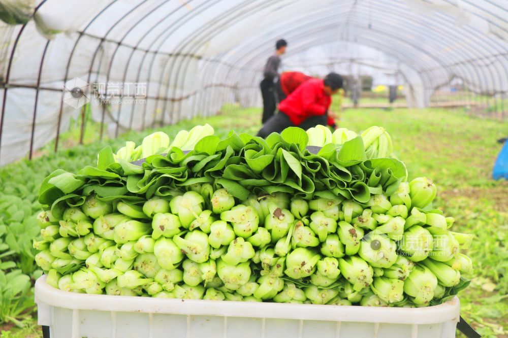 3月1日,江西省余干县乌泥镇现代农业科技示范园有机蔬菜种植基地一片繁忙,农民正在大棚内进行釆收、管护、翻耕劳作。
