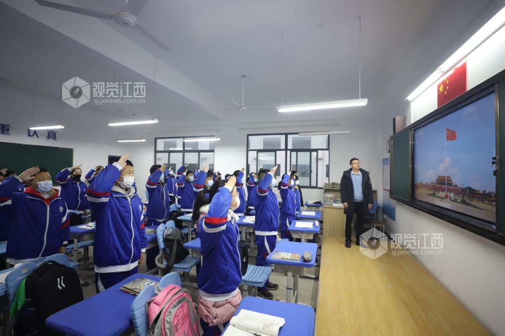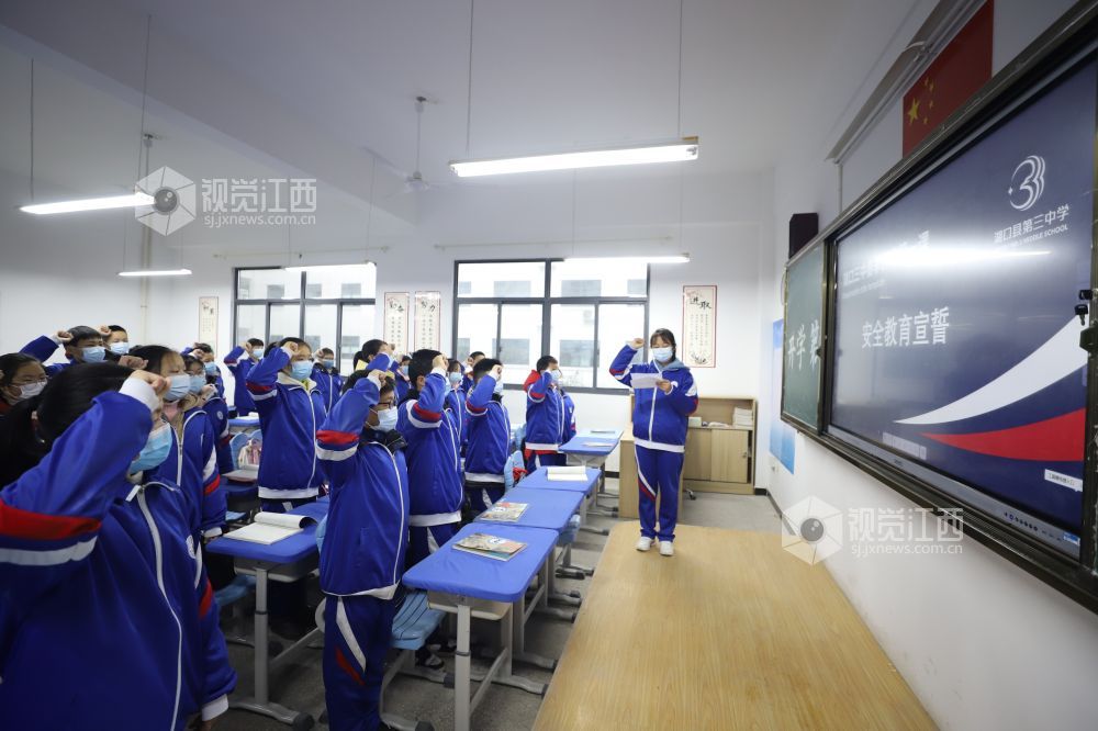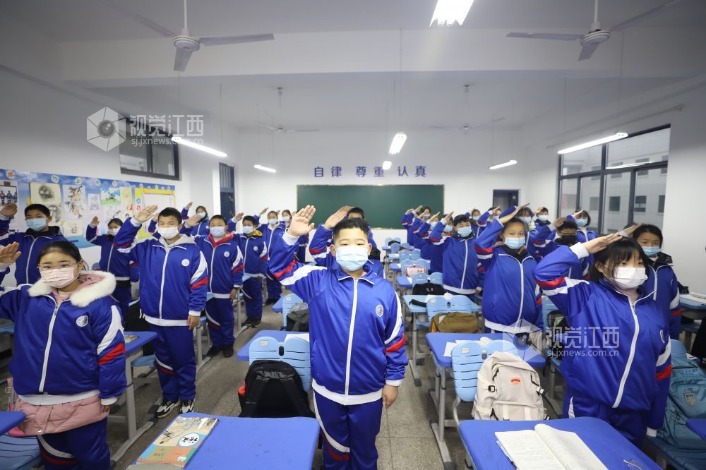 2021年3月1日,江西省九江市湖口县中小学、幼儿园在绵绵春雨中迎来开学日,孩子们走进了充满生机的校园。当日,湖口县第三中学开展室内升旗仪式、集体宣誓等“开学第一课”活动,以新面貌迎接新学期。