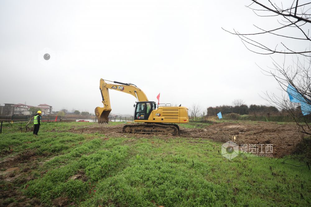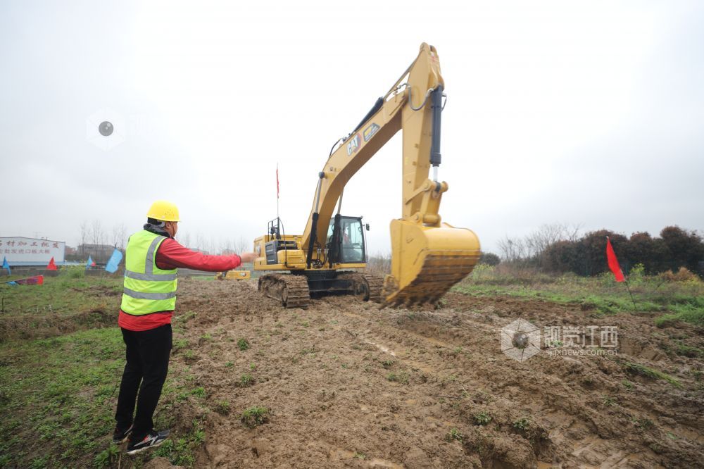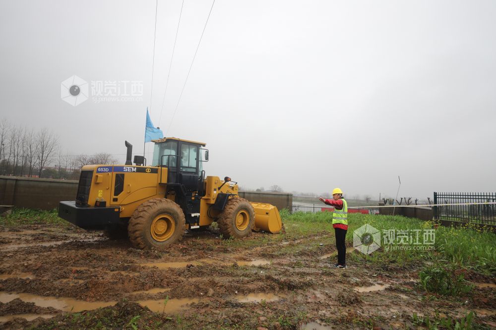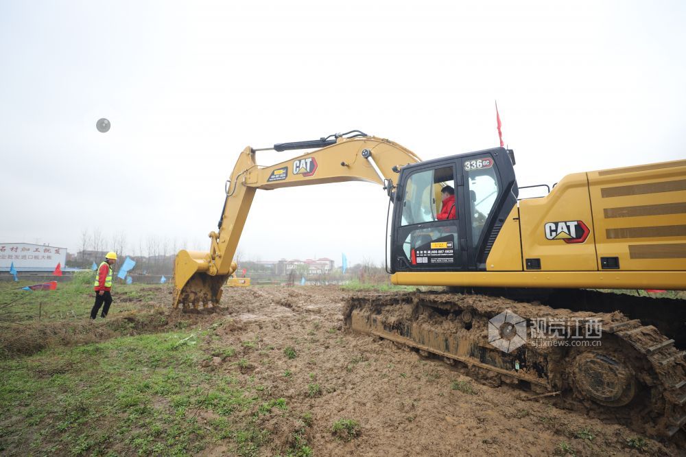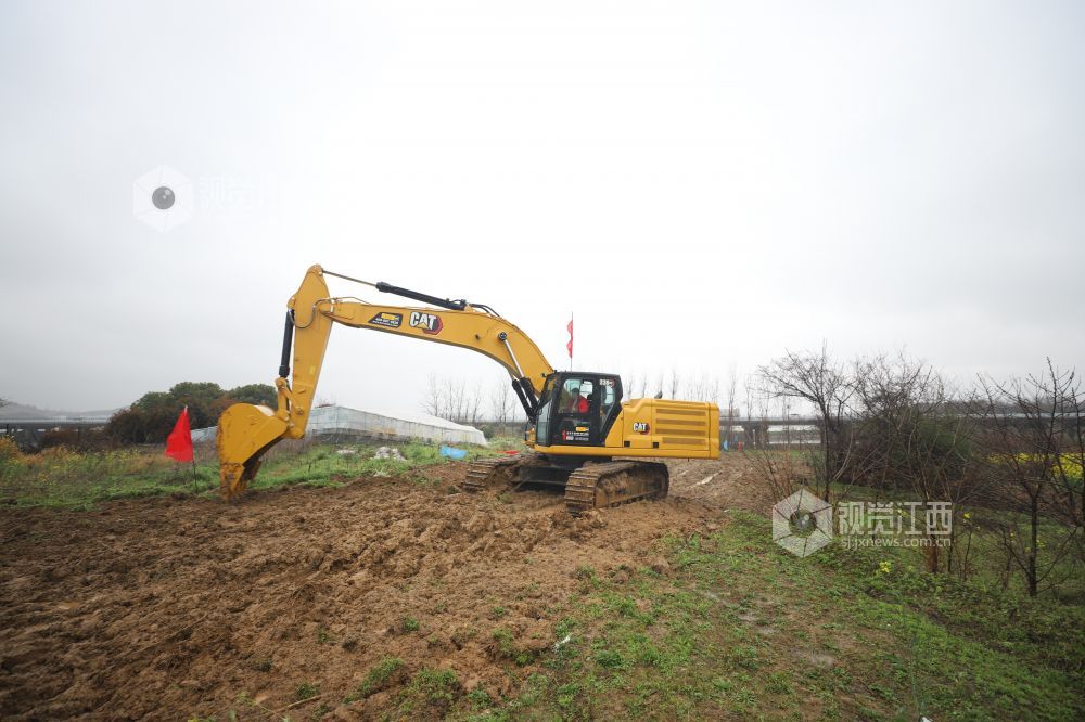 2021年3月1日,位于江西省湖口县苏官渡的三里至屏峰作业区疏港公路工程(一期)建设现场,开工首日,施工方正在进行清表作业。