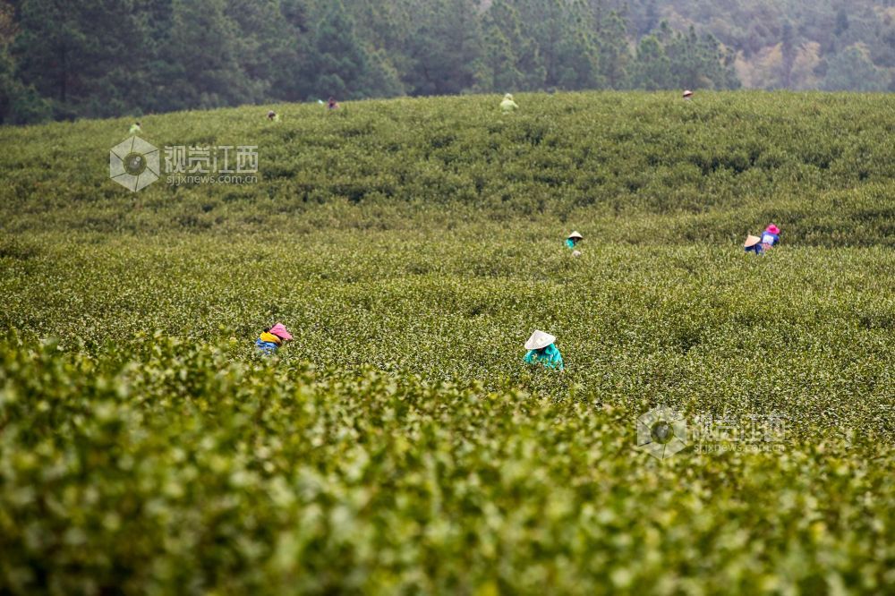 3月2日,在江西省峡江县水边镇分界村有机茶园,茶农在采摘早春茶。惊蛰将至,峡江县水边镇分界村有机茶园迎来春茶采摘期,当地茶农抢抓农时,赶采早春茶,供应市场。