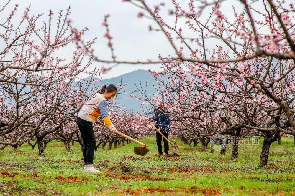 2021年3月2日,江西省吉安市峡江县金坪民族乡新民村村民在桃园劳作。