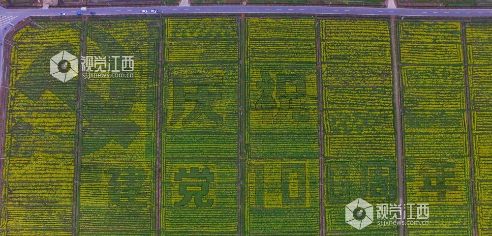 3月初的江西省宜春市万载县白良镇白良村,千亩油菜花竞相绽放,当地采用彩色油菜花绘制出巨型党徽,并配以“庆祝建党100周年”文字,用独特方式献礼中国共产党百年诞辰,祝福祖国繁荣昌盛。