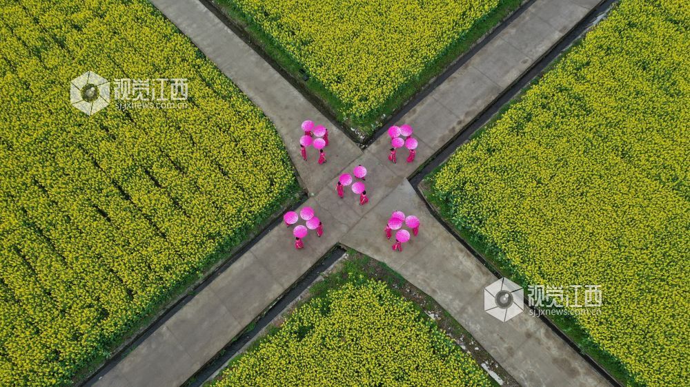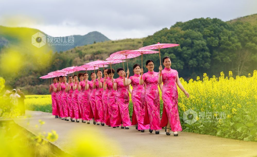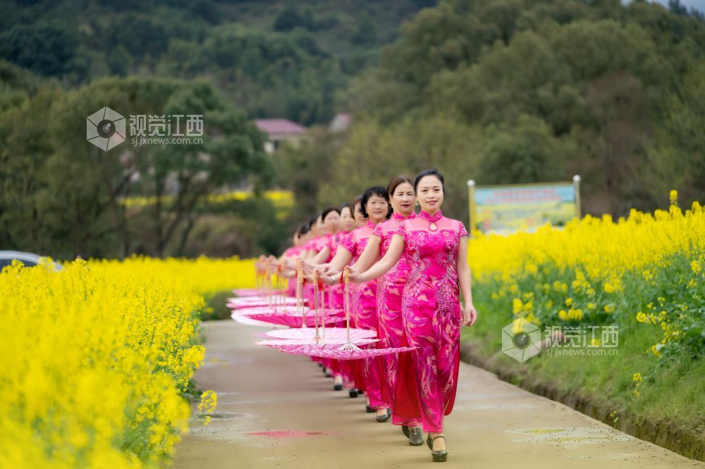春暖花开的洋溪,金花走廊,处处流金溢彩,3月1日,江西省安福县模特协会组织走秀人员来到洋溪石山村与大自然来一场亲密接触的户外走秀。
