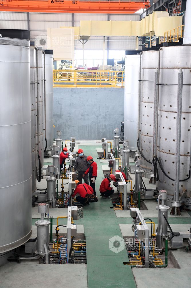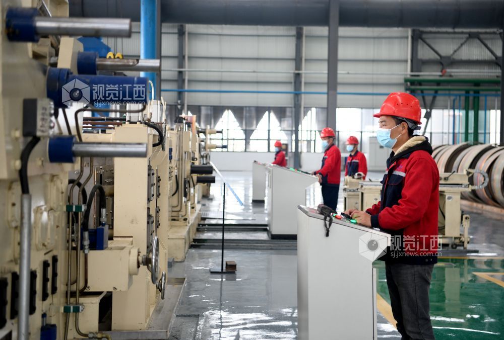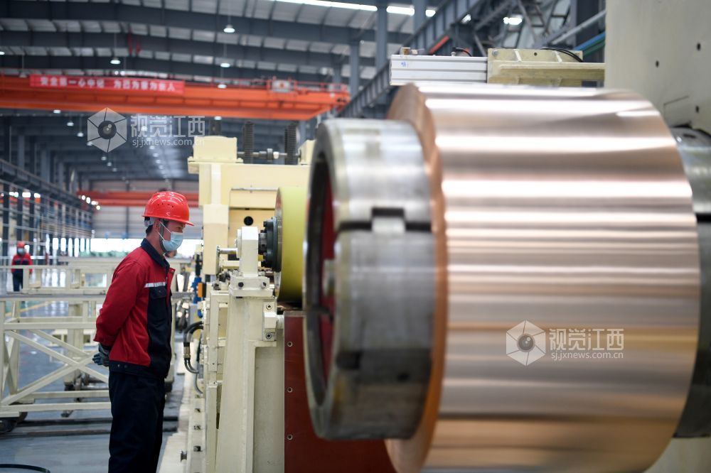 2021年3月9日,在江西省上饶市铅山县工业园区一生产车间里,企业员工正在抓紧生产高精度铜箔。