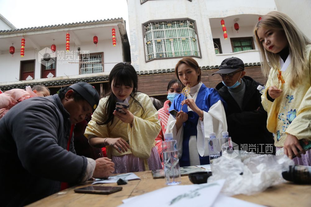 川剧变脸、剪纸、糖画、捏面人、爆米花、糖葫芦……3月10日,江西省余干县杨埠镇河埠老街第二届民俗文化节精彩上演,来自五湖四海的游客和村民一起看村景、品民俗,乐而忘返,感受中国传统民俗文化。