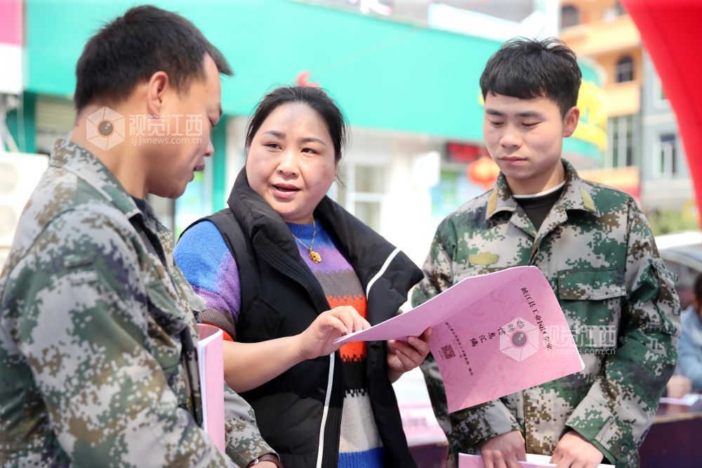 3月15日,在江西省吉安市峡江县巴邱镇退役军人专场招聘会现场,求职者在了解岗位招聘信息。