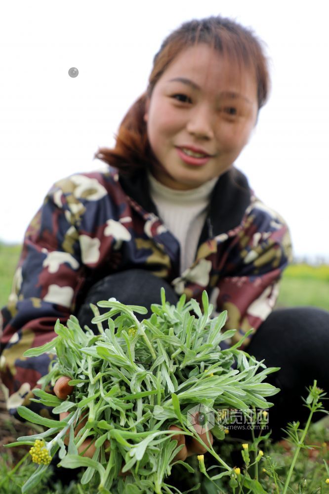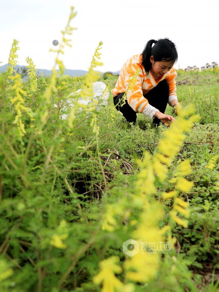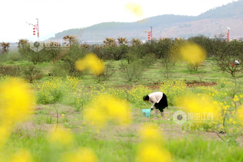2021年3月12日,在江西省吉安市峡江县金坪民族乡新民村,游客在田野里采摘野菜。阳春时节,江西省吉安市峡江县不少市民纷纷来到郊外踏青、赏花、呼吸新鲜的空气。