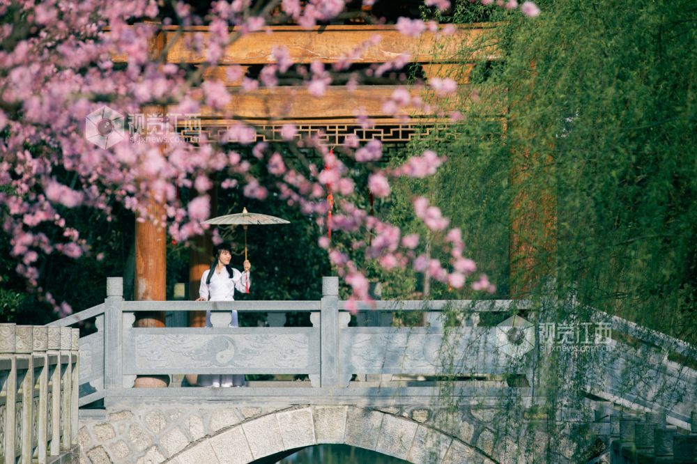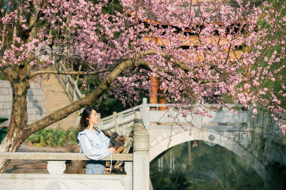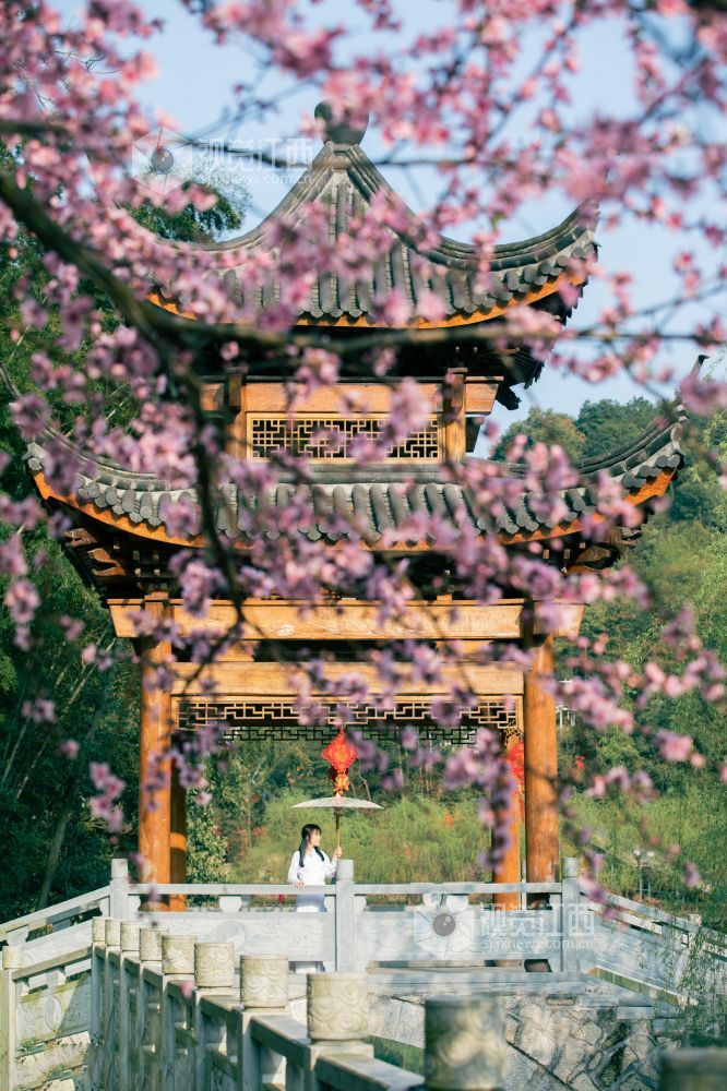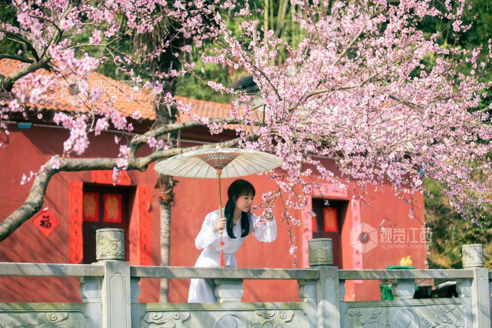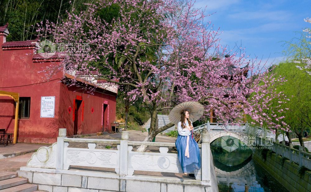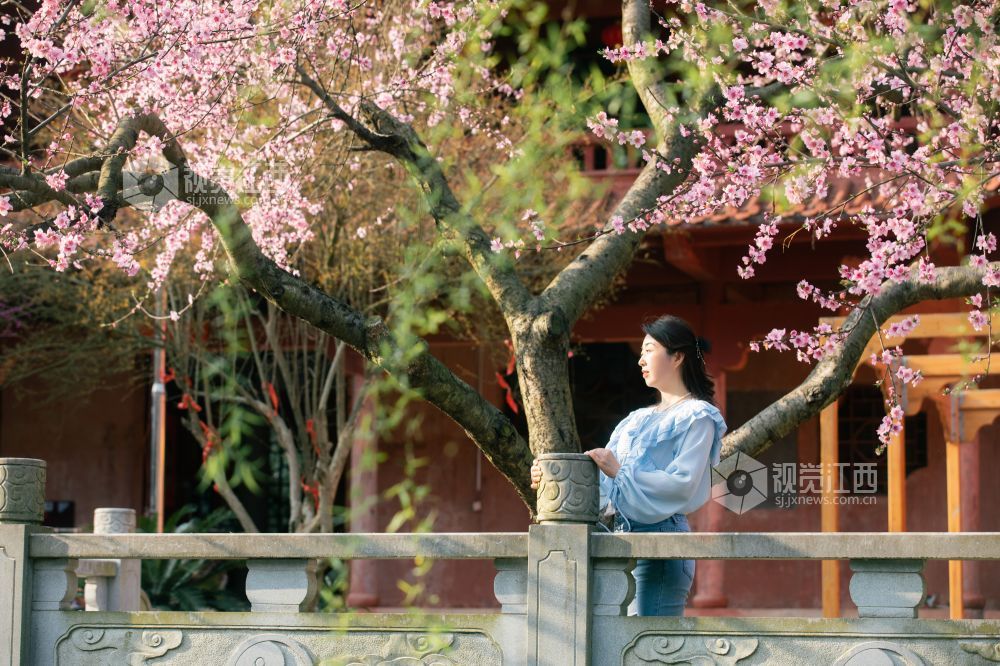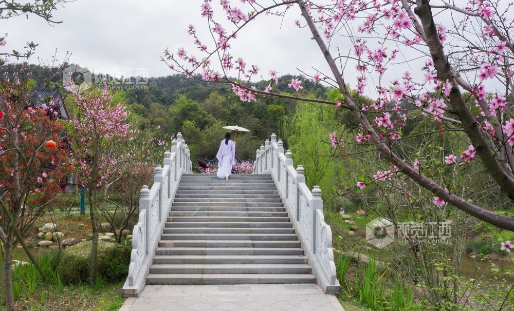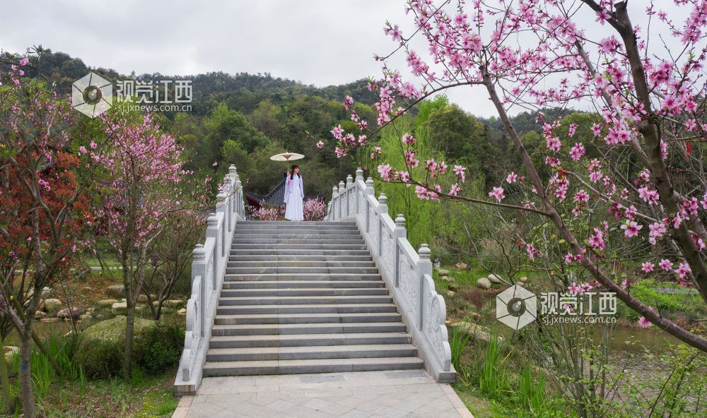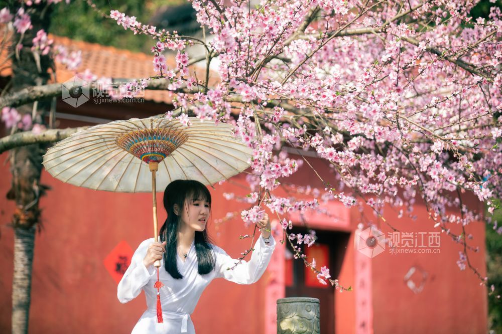 桃花夭夭含情笑,人间始知春日来。浪漫的春日里,在江西省吉安市峡江县玉笥山风景区内的桃花次第开放、争奇斗艳,喜迎八方游客的到来。